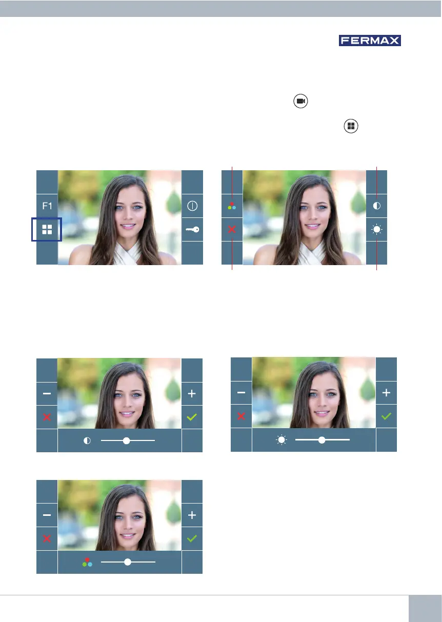 The monitor allows you to adjust the brightness, contrast and colour while a call is incoming