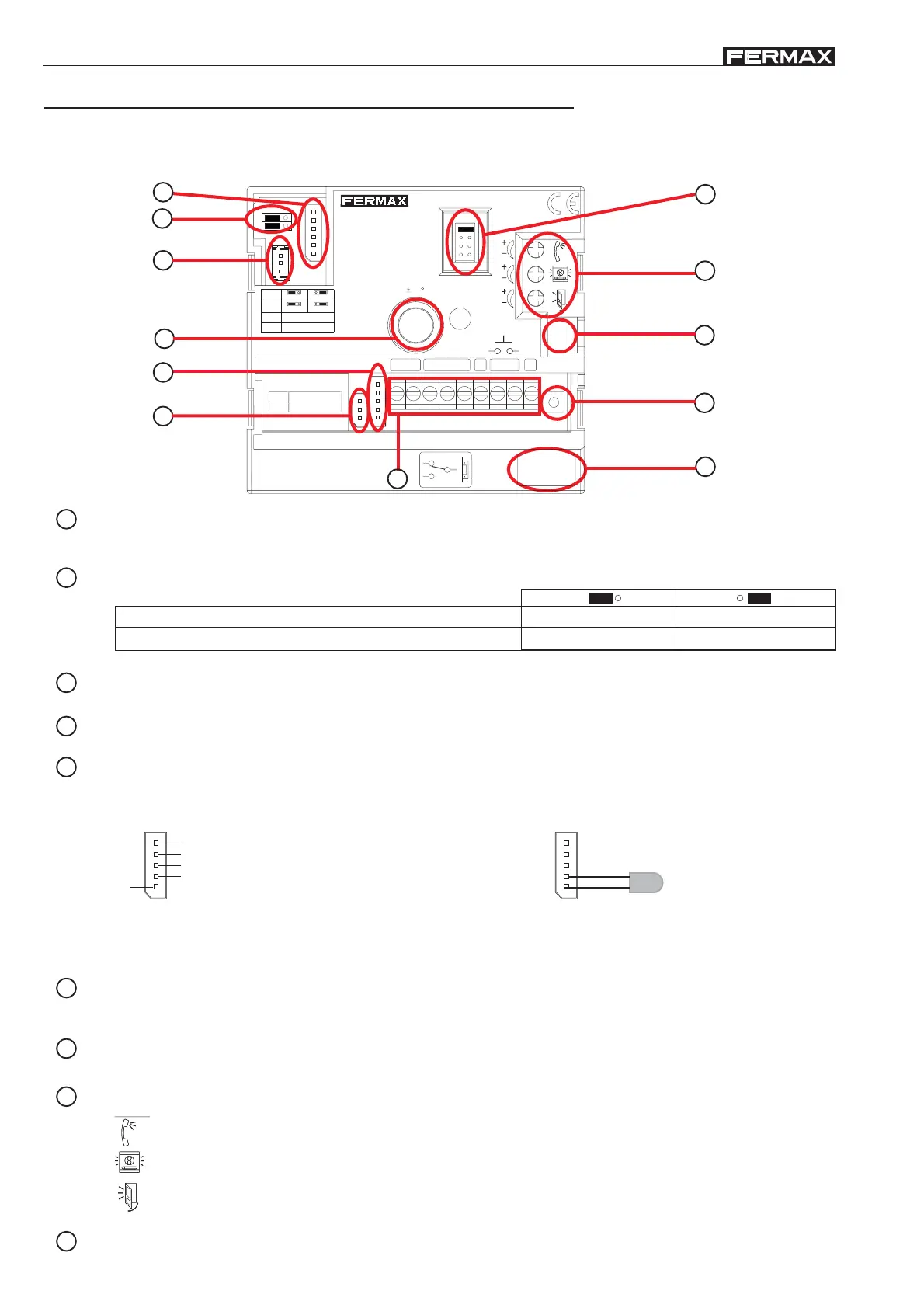 CN1: Connection for call extension module, keypad, display or up to three buttons (the same amplifier for buildings