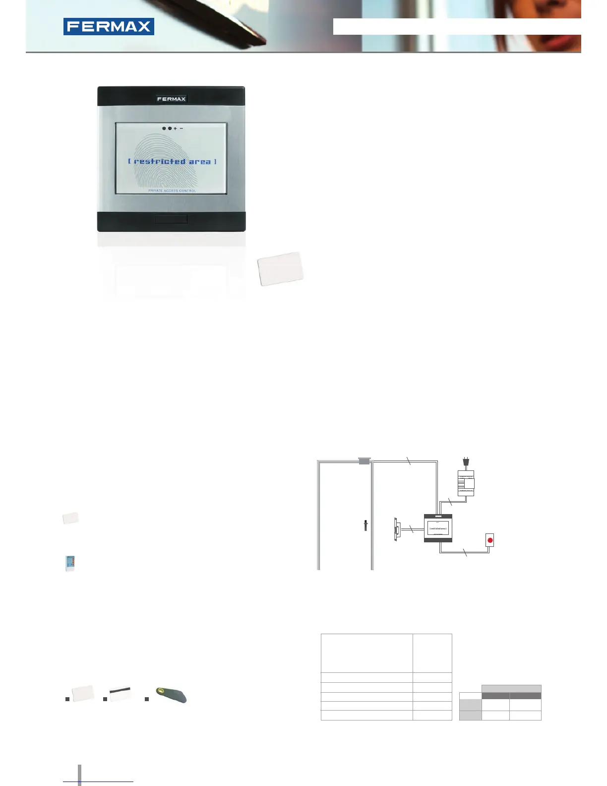 • Capacity: up to 400 user cards or keyrings.