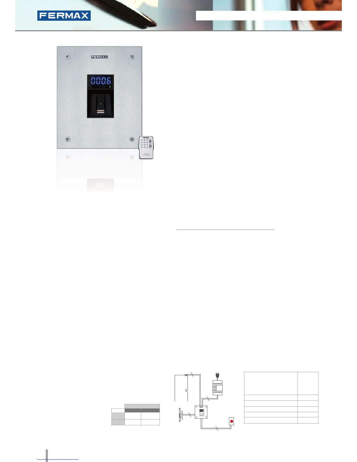 • Biometric access fingerprint reader with capacitive sensor.