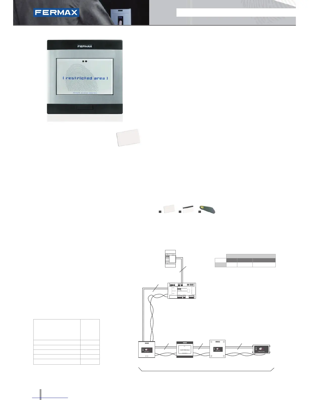 • Reader - Central Unit Wiring: 2 wires (power supply) +