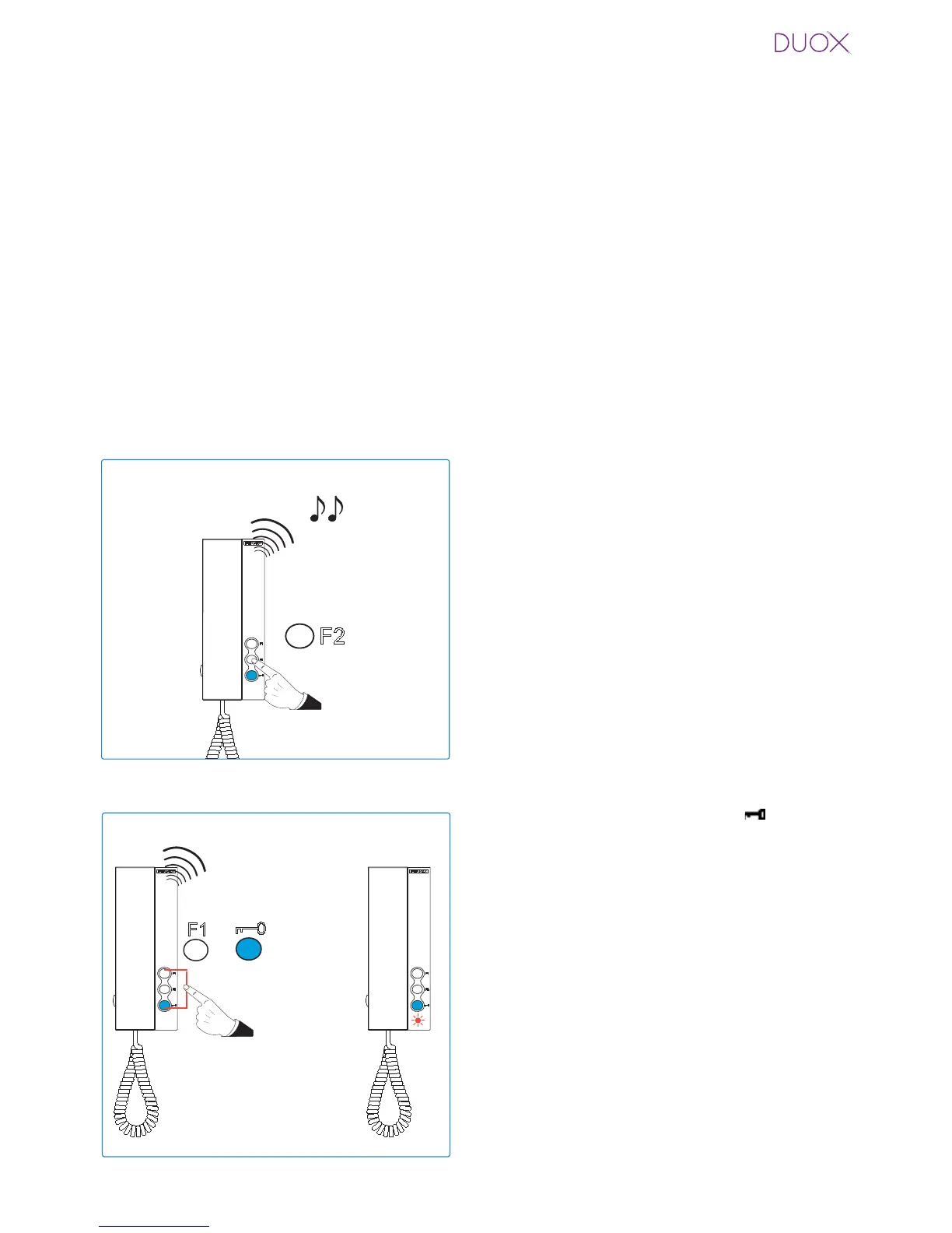 When you press the F2 button the telephone generates a beep and a command is transmitted