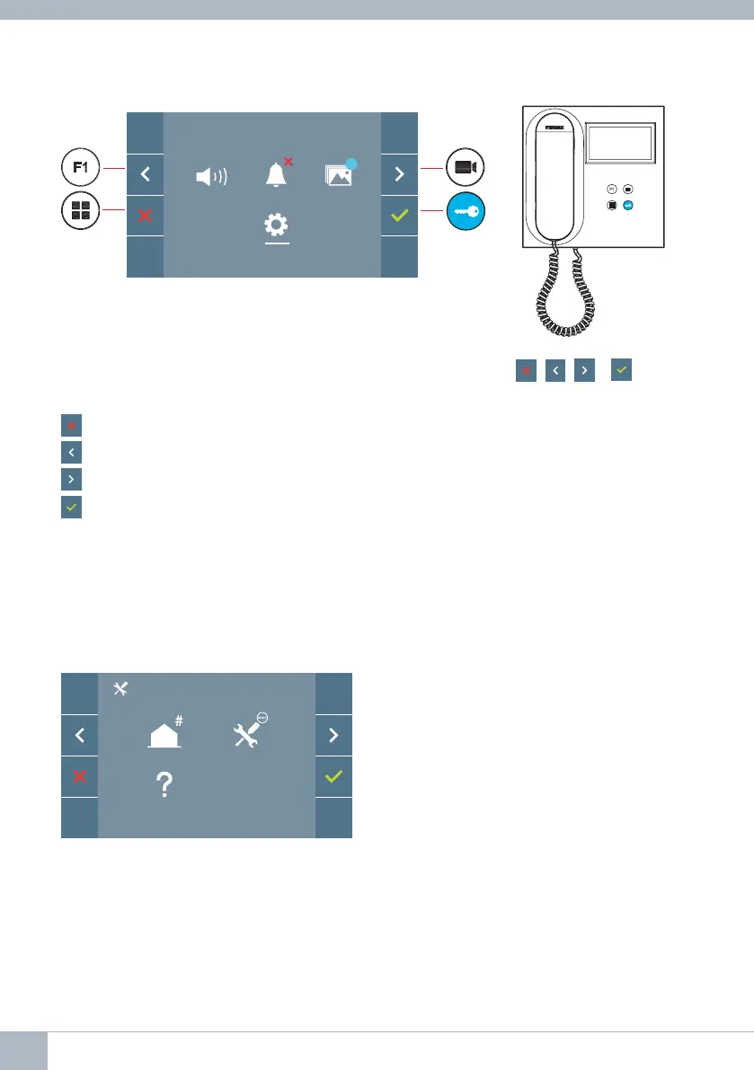 Los iconos visualizados en la pantalla (botones de navegación: , , y ), se ma-
