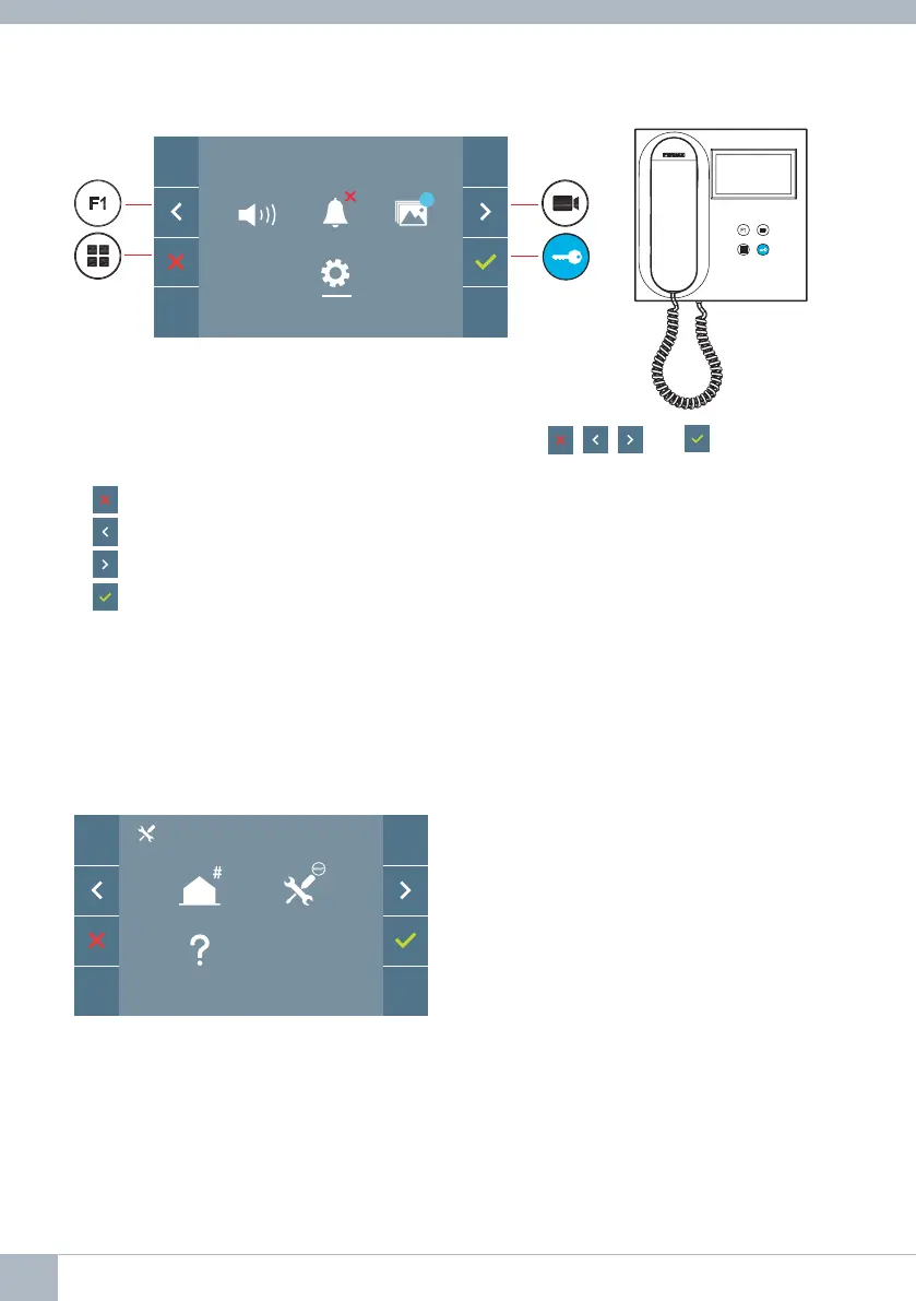 The icons displayed on the screen (navigation buttons: , , and ), are controlled