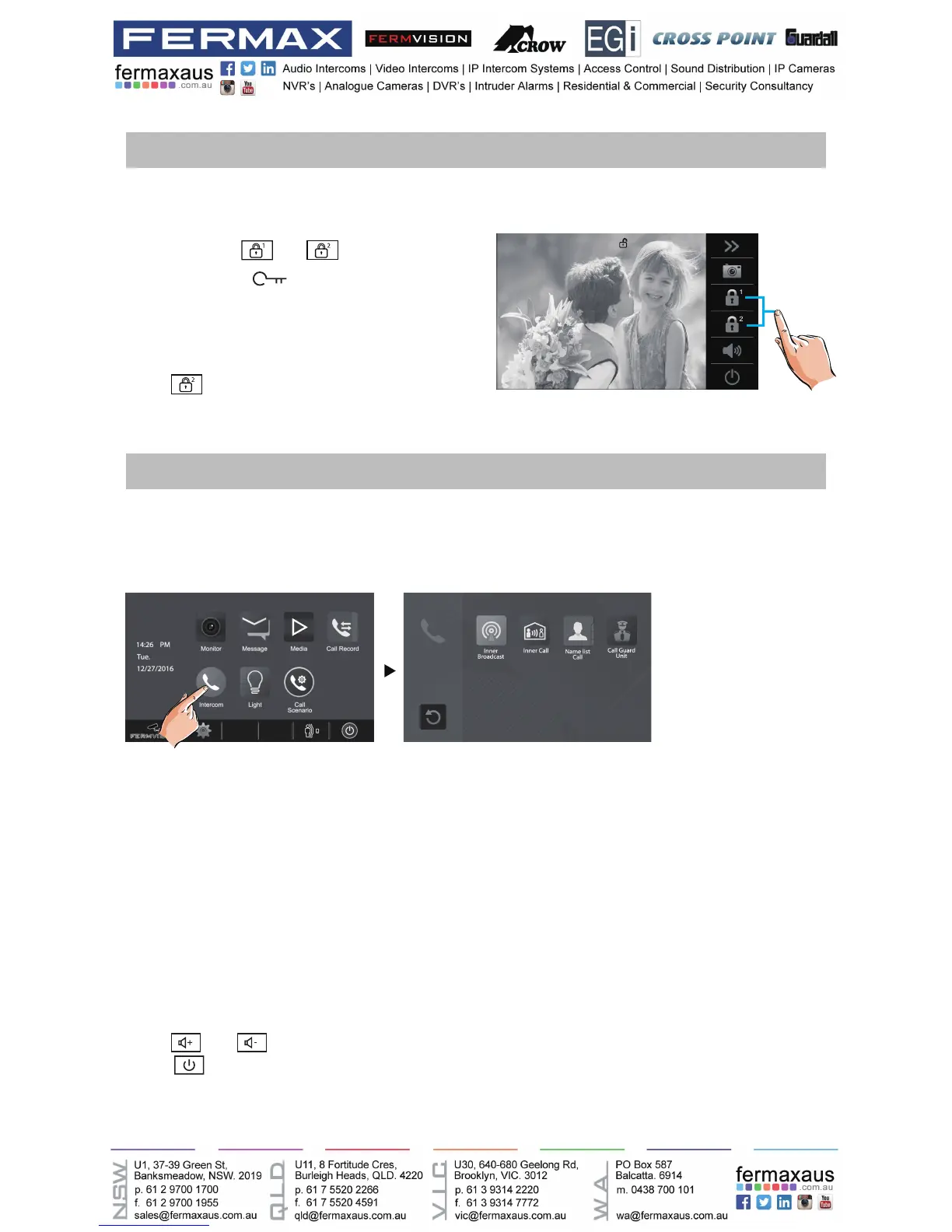 2.Touch [Inner Call] icon on one of monitor, all other monitors in the same room will ring at the