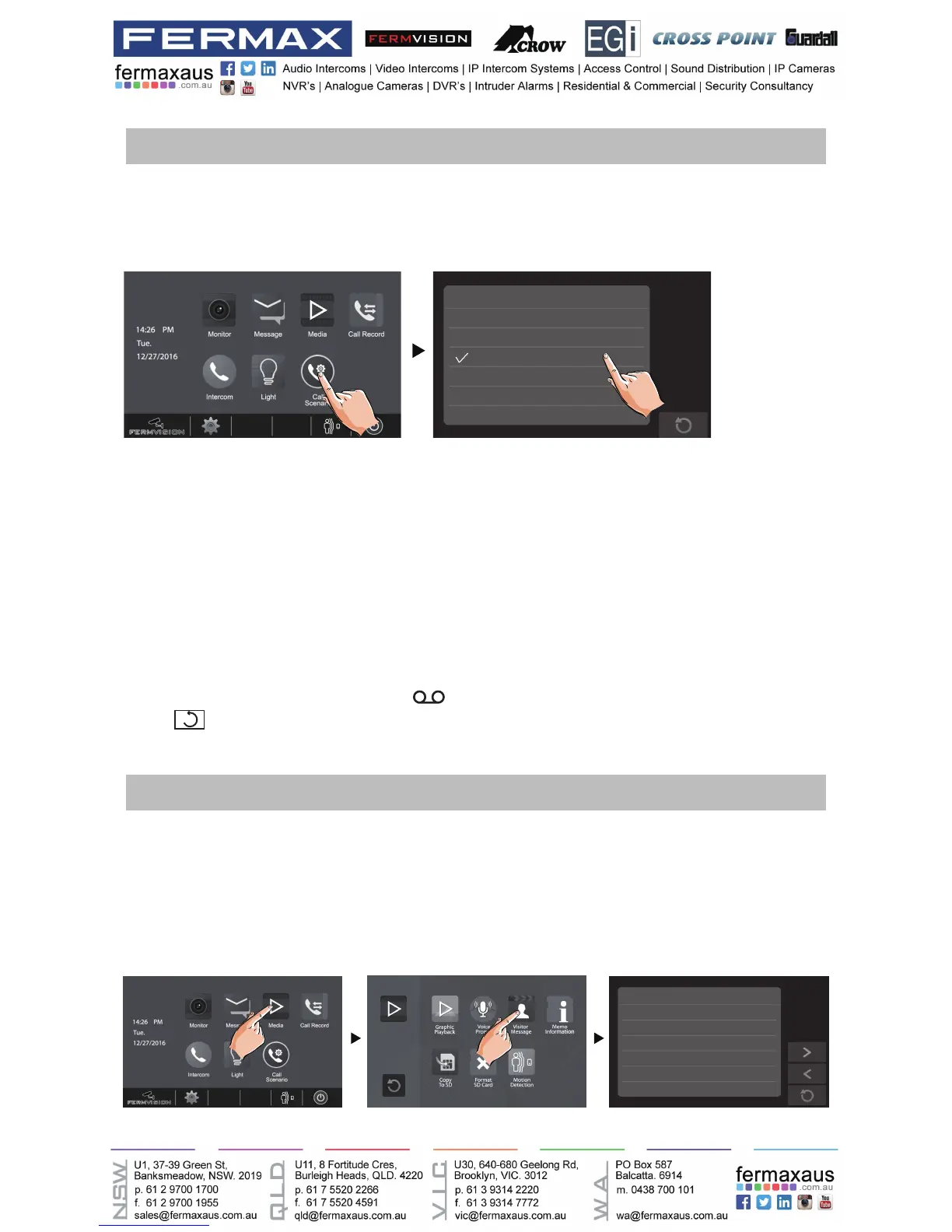 On main menu page, touch [Multimedia]->[Visitor Message] icon, the most recent visitor’s