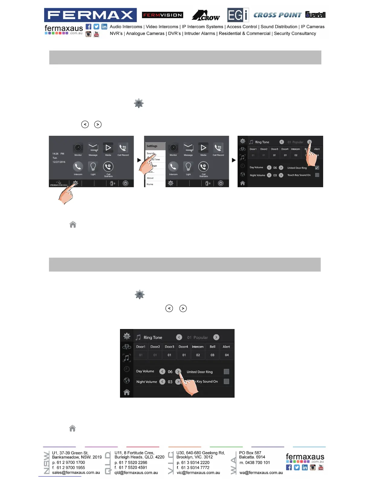 2.Touch the setting target of door tone,intercom tone,door bell tone and alert tone individually,