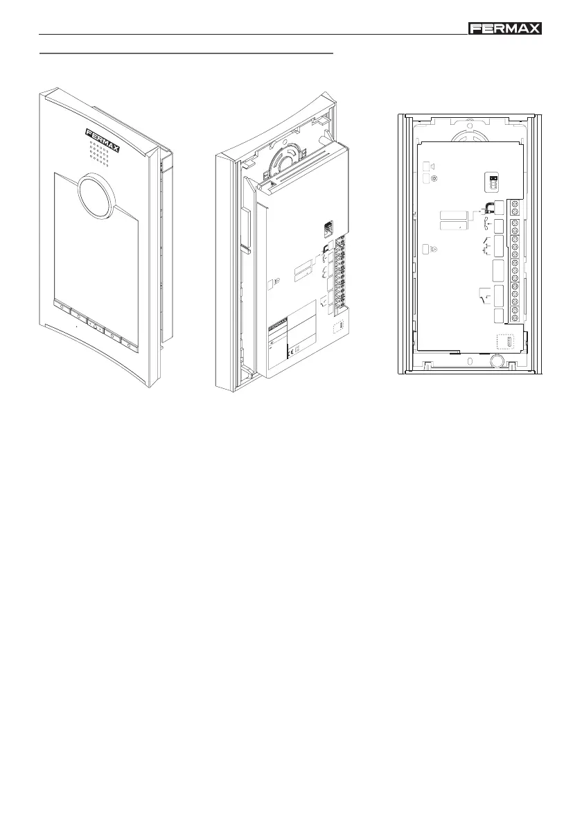 - C, NA, NC: contactos relé (conexión abrepuertas)