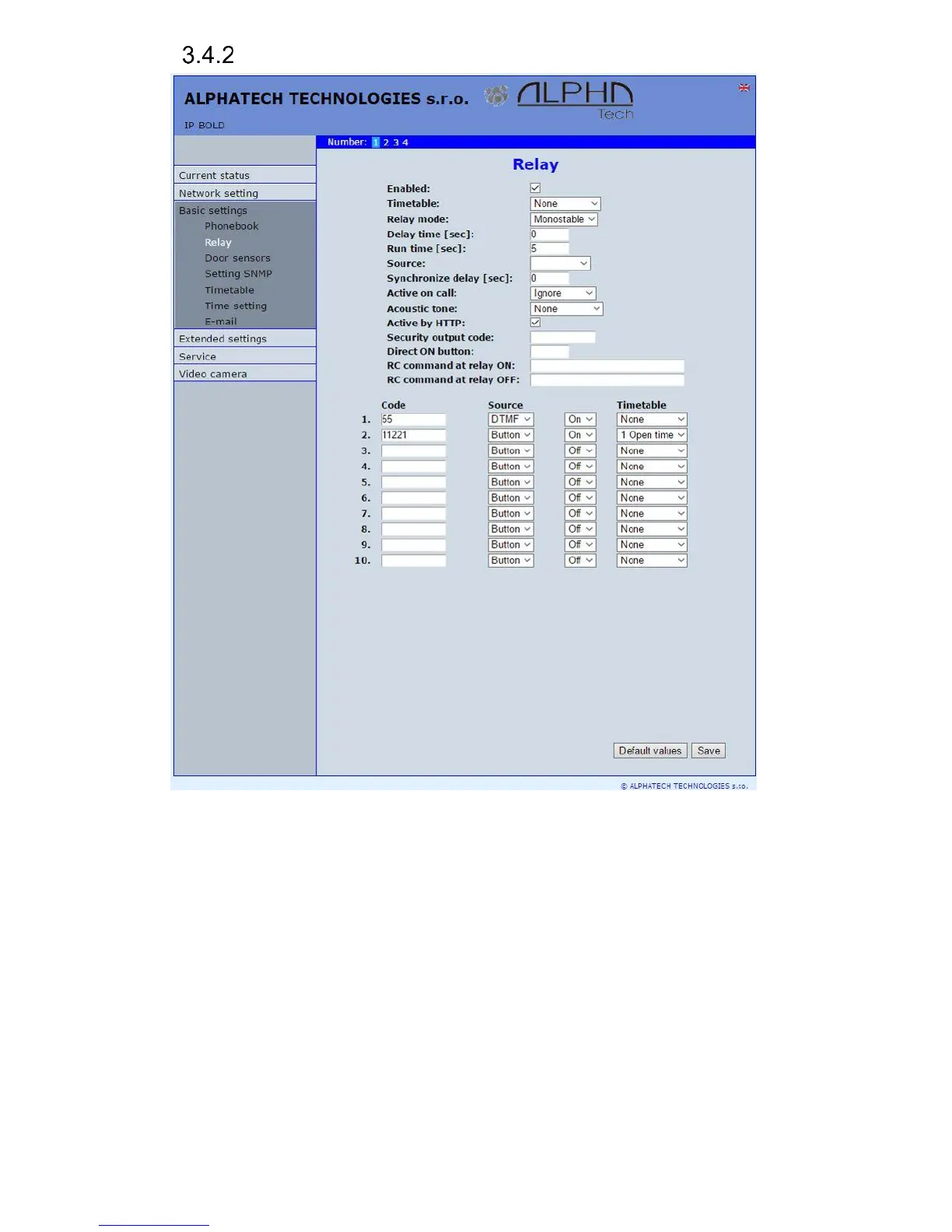 In relays setting are accessible 4 relays. The relays 1 and 2 is output of