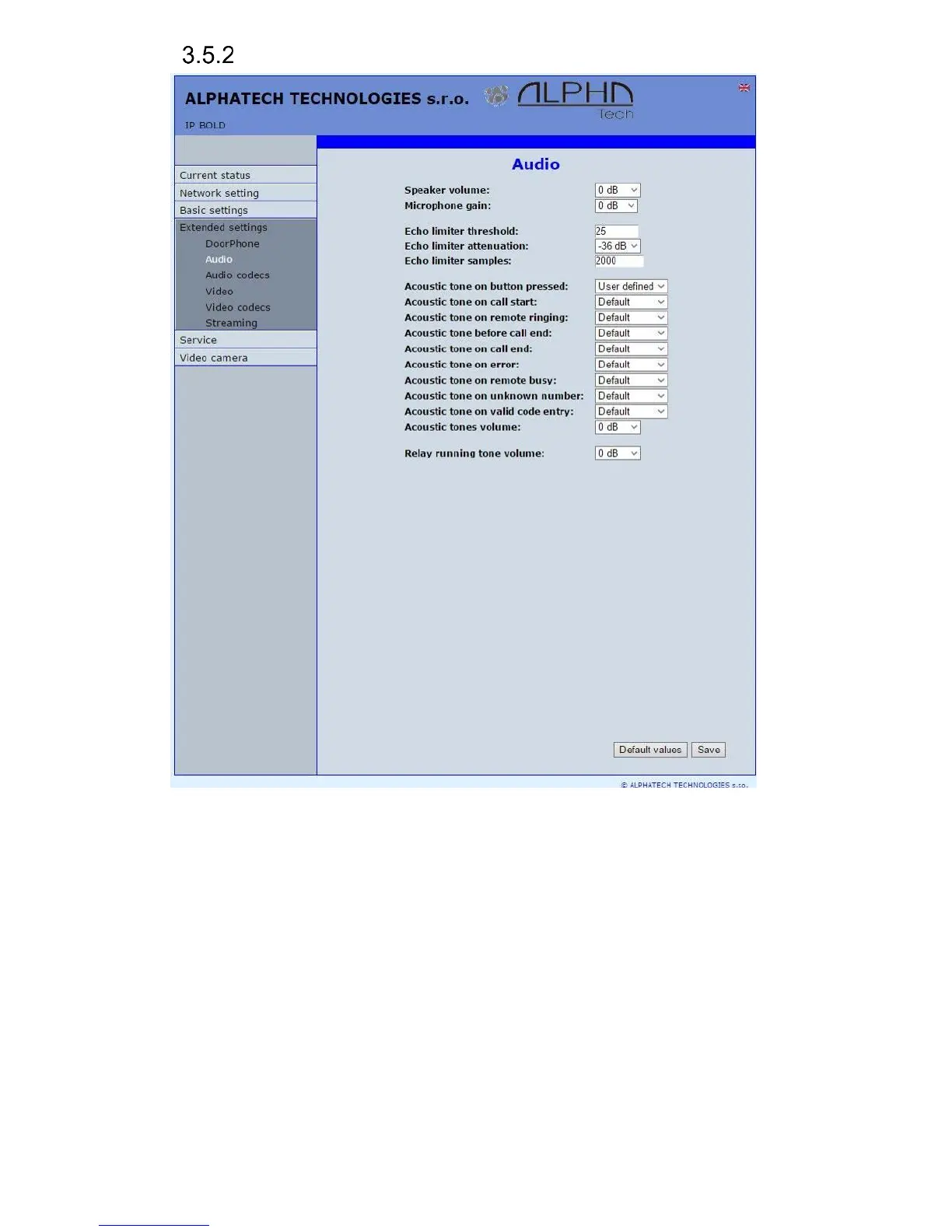 Tone – here you select acoustical signalling of different door entry status.