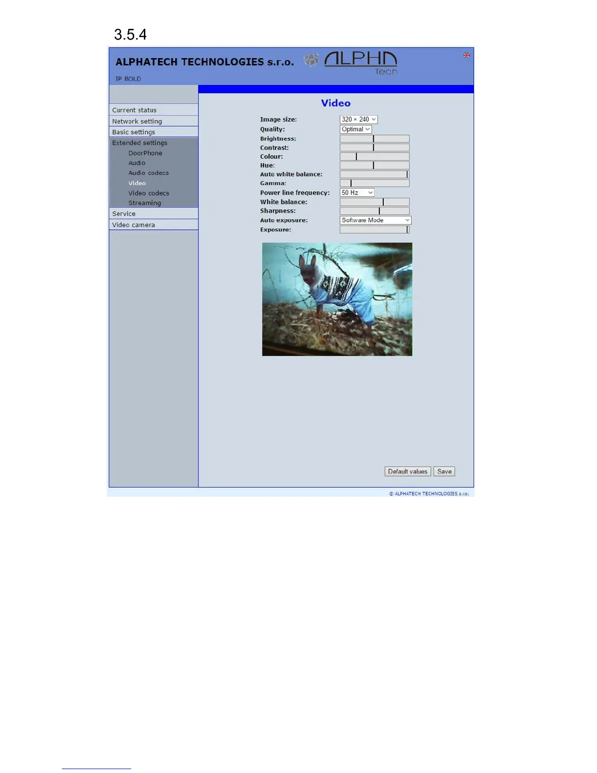 Further setting is standard image parametres petting and reset is immediatelly