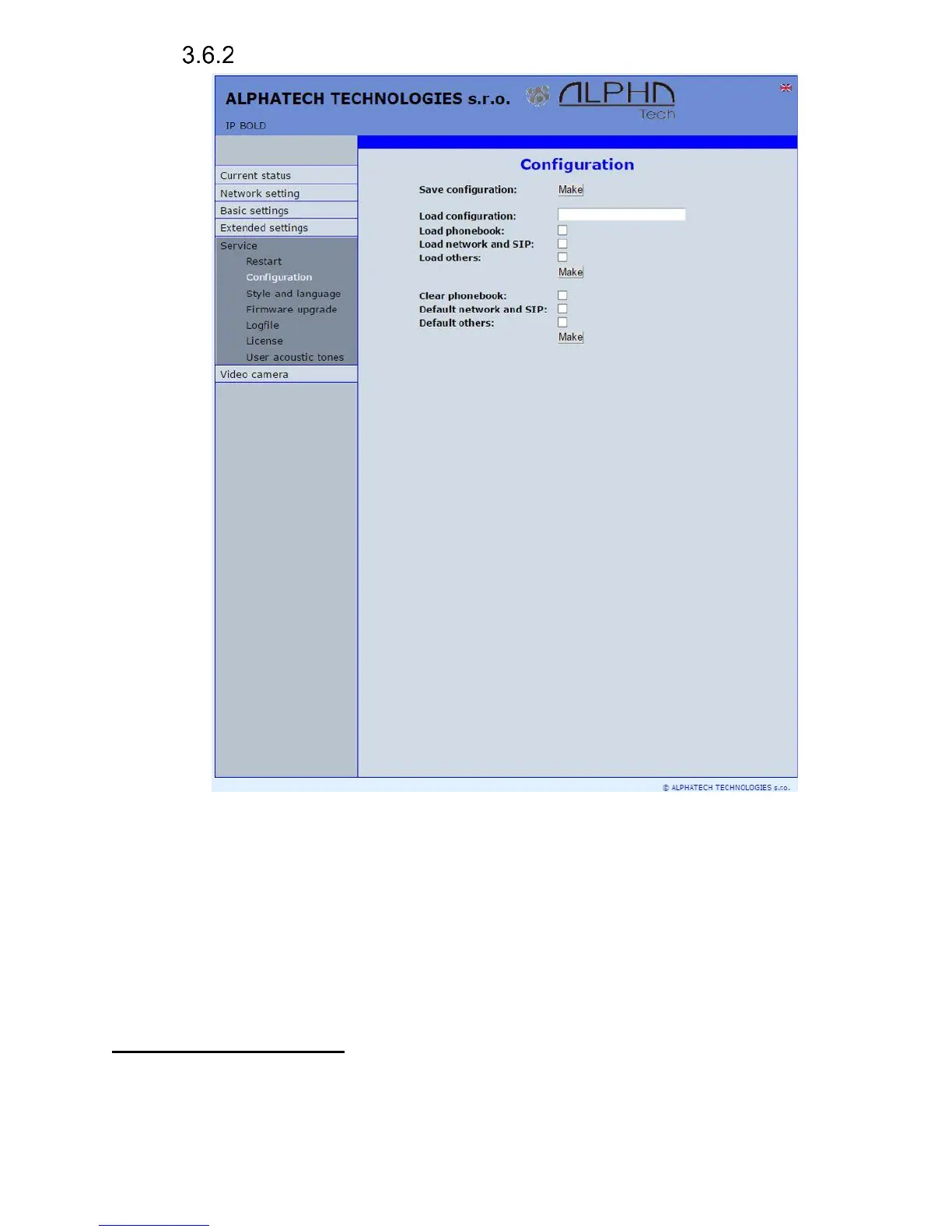 Further is necessary select if phone book, network setting, SIP and