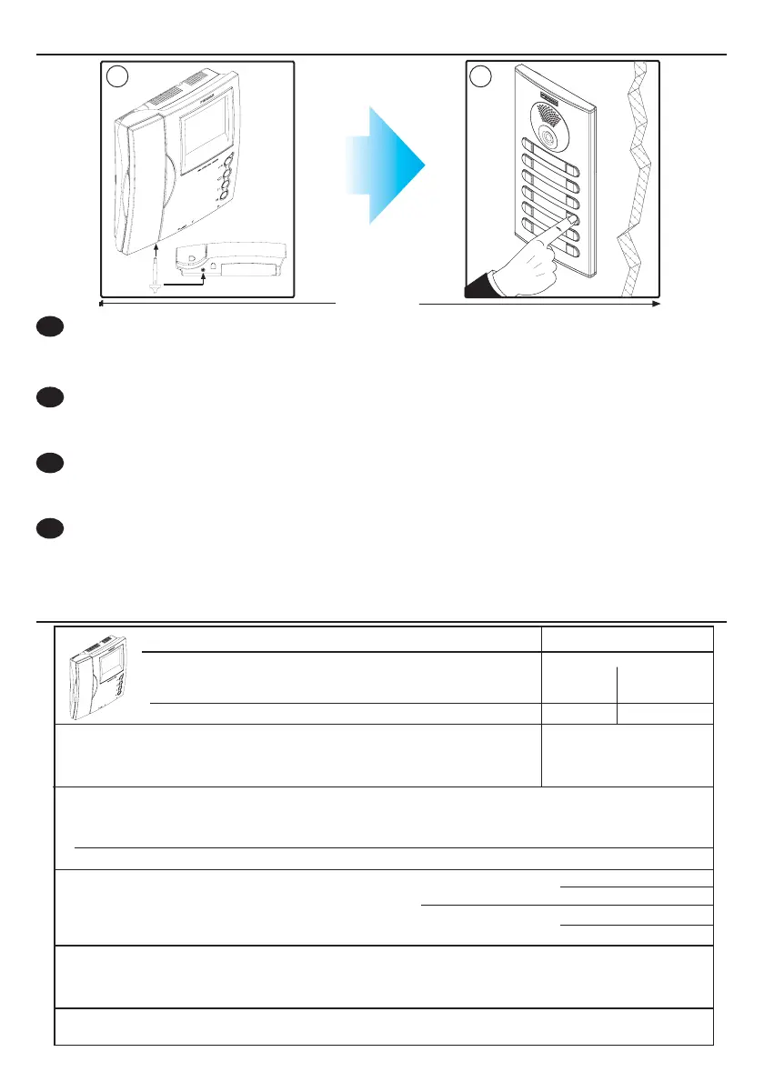 2.Drücken Sie die Ruftaste zur Wohnung. Der Vor-gang wird erneut durch einen Signalton bestätigt.