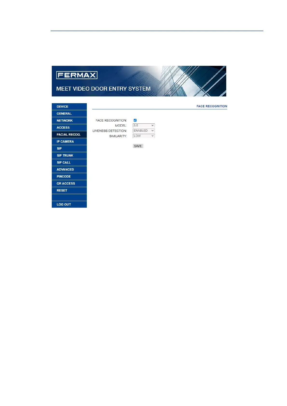 Use this setting to enable or disable the FACE RECONGNITION function of the panel.