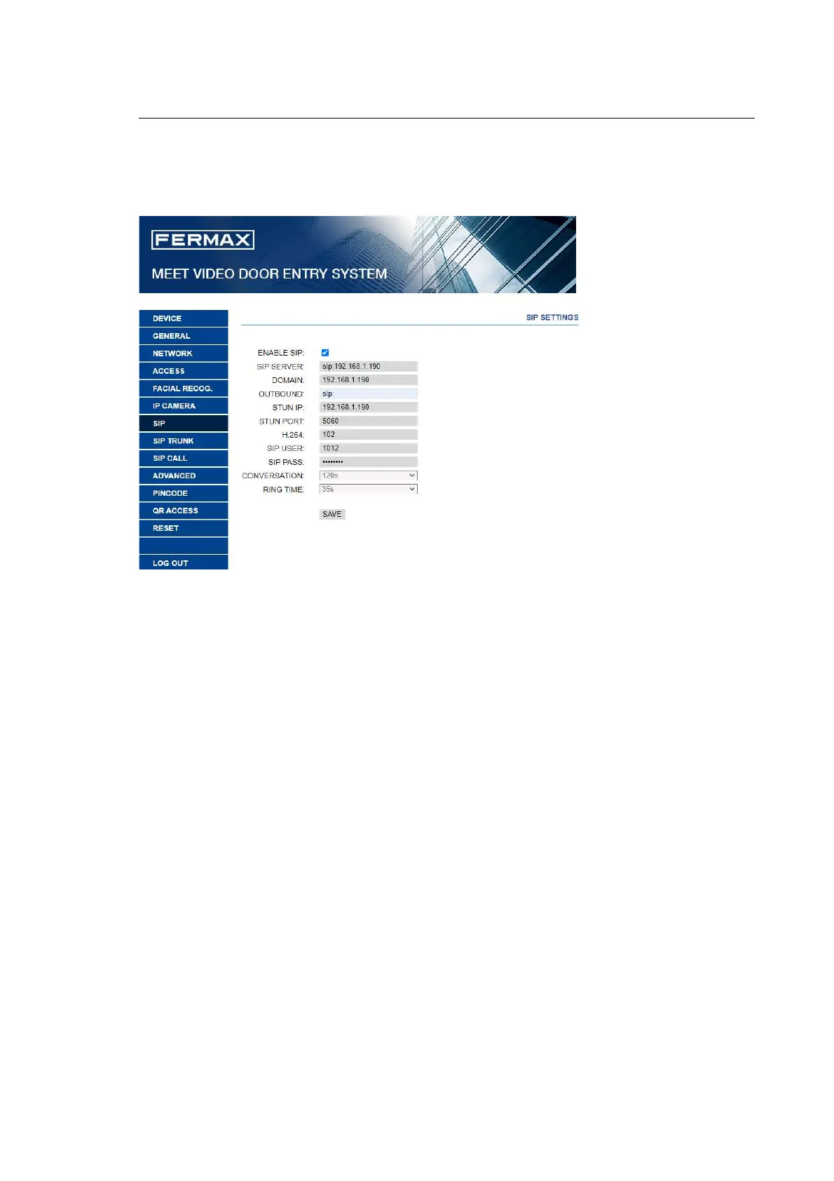 SIP USER, SIP PASSWORD: Indicate the user and password that this terminal is programmed