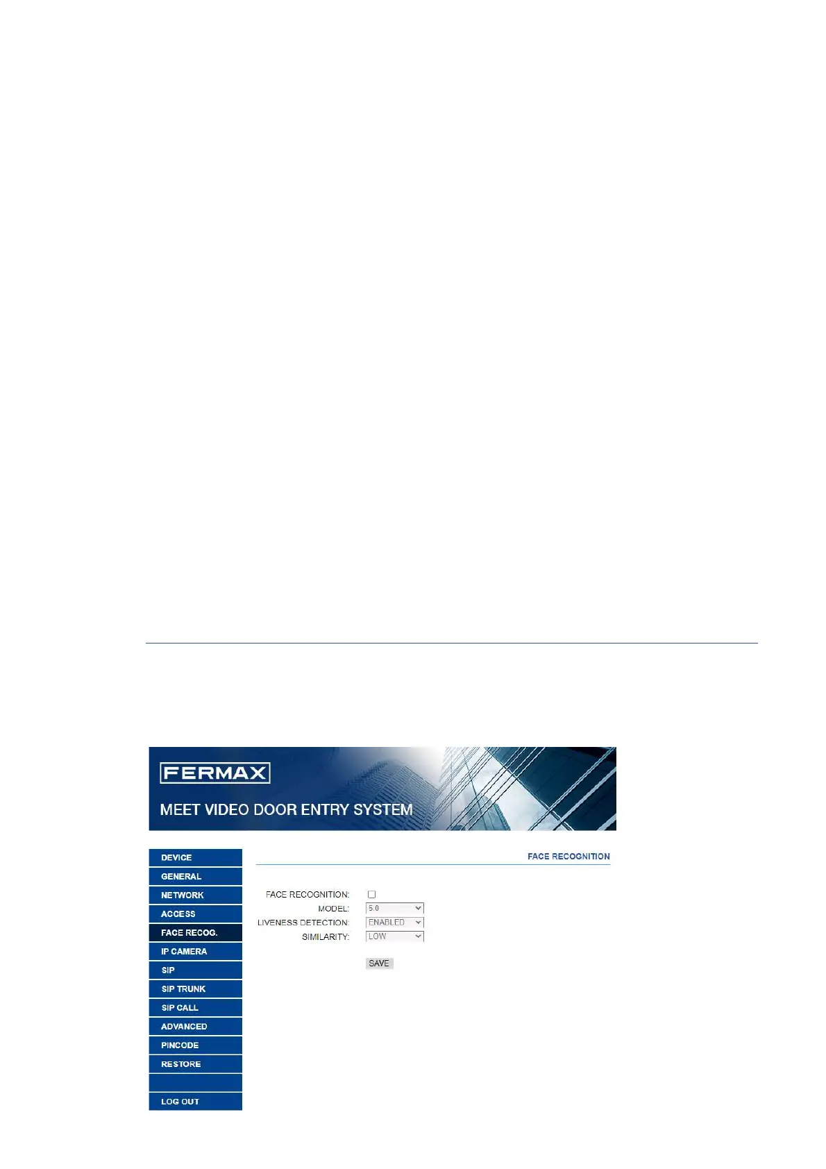 Use this setting to enable or disable the FACE RECONGNITION function of the panel.