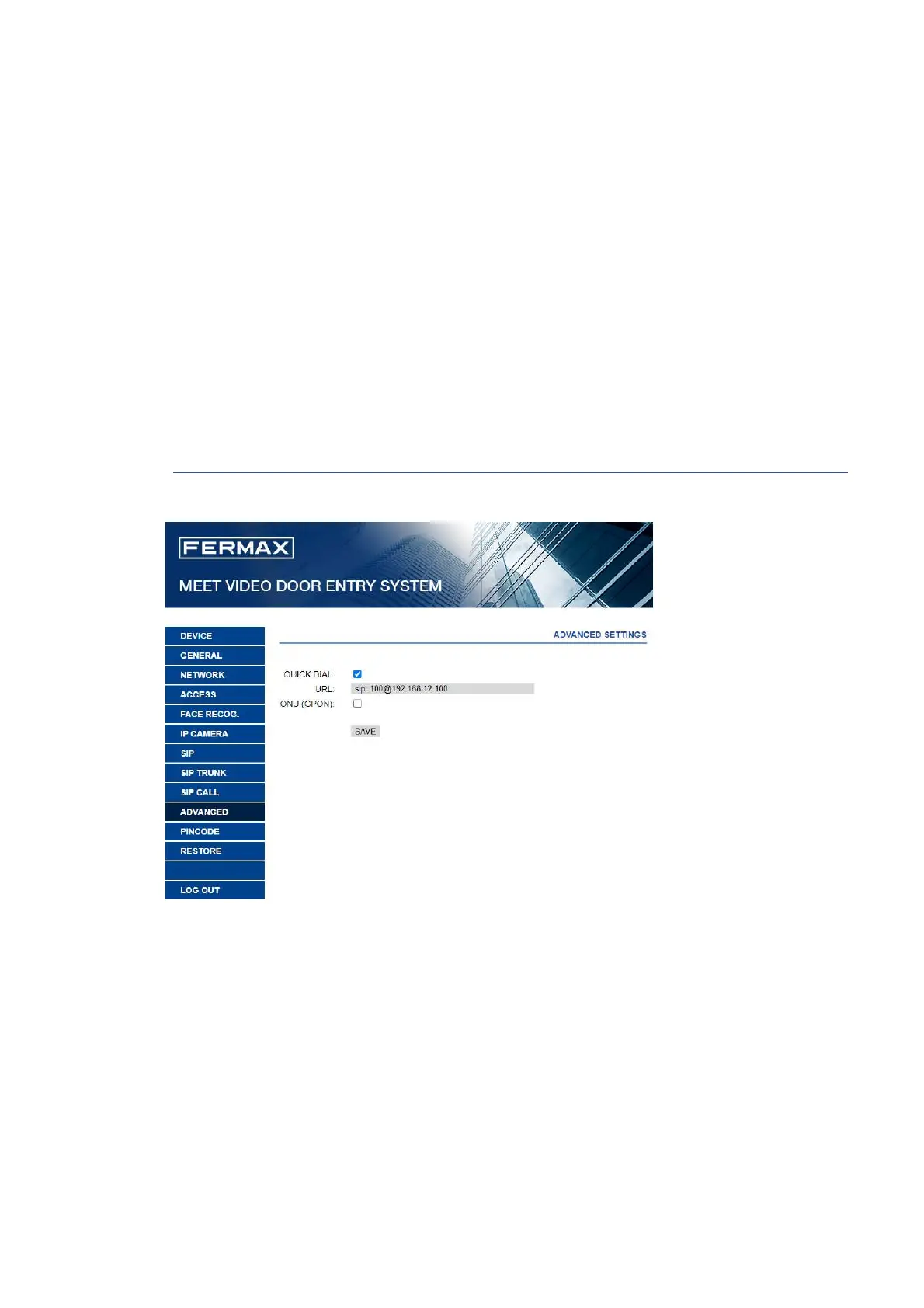 o FERMAX MEET ME device ->sip: meet_me_user@sip.fermax.com