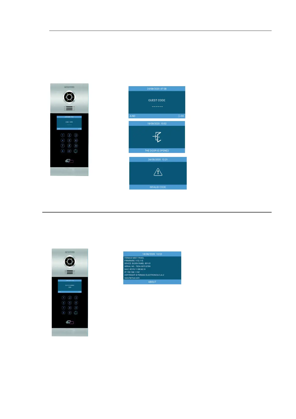 The panel shall have installed a GUEST CODE MODULE Ref.1494 and a third-party Access Control