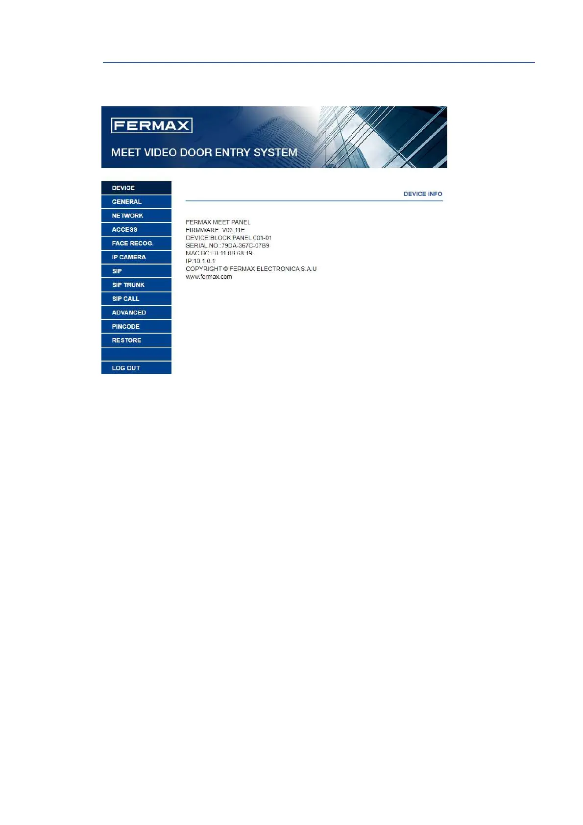 The section DEVICE provides some technical information regarding the equipment, as a reference.