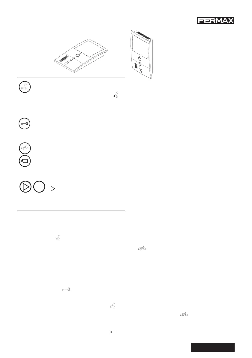 · Con el monitor en reposo, al pulsar este botón se realiza una llamada al conserje (si existe conserjería).