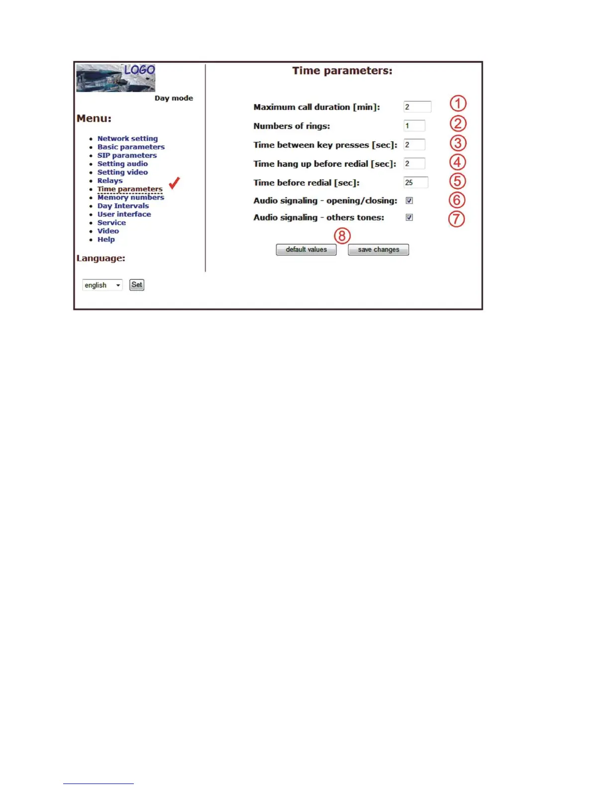 1. max. time, for which the DoorPhone is hanging up, this time can be extended
