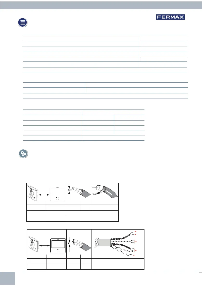 Este kit se puede instalar con 3 hilos + COAXIAL, o con un BUS de 5 hilos de la sección indicada