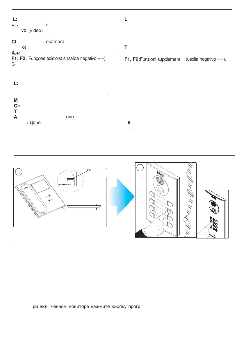 1.Con il monitor collegato premere il pulsante della programmazione.Si ascolterá un suono di