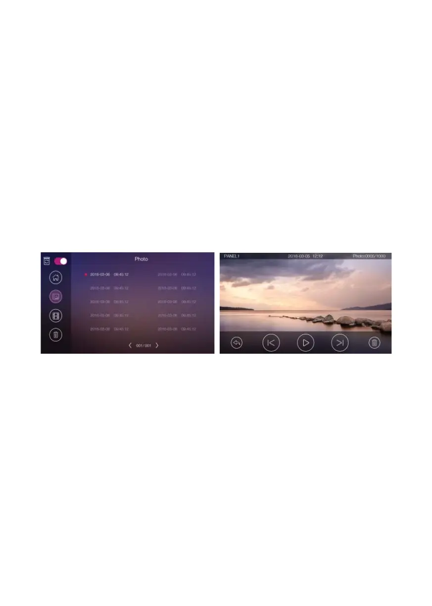 Press [Picture] or [Video] icon on main page. You can erase pictures/videos pressing the