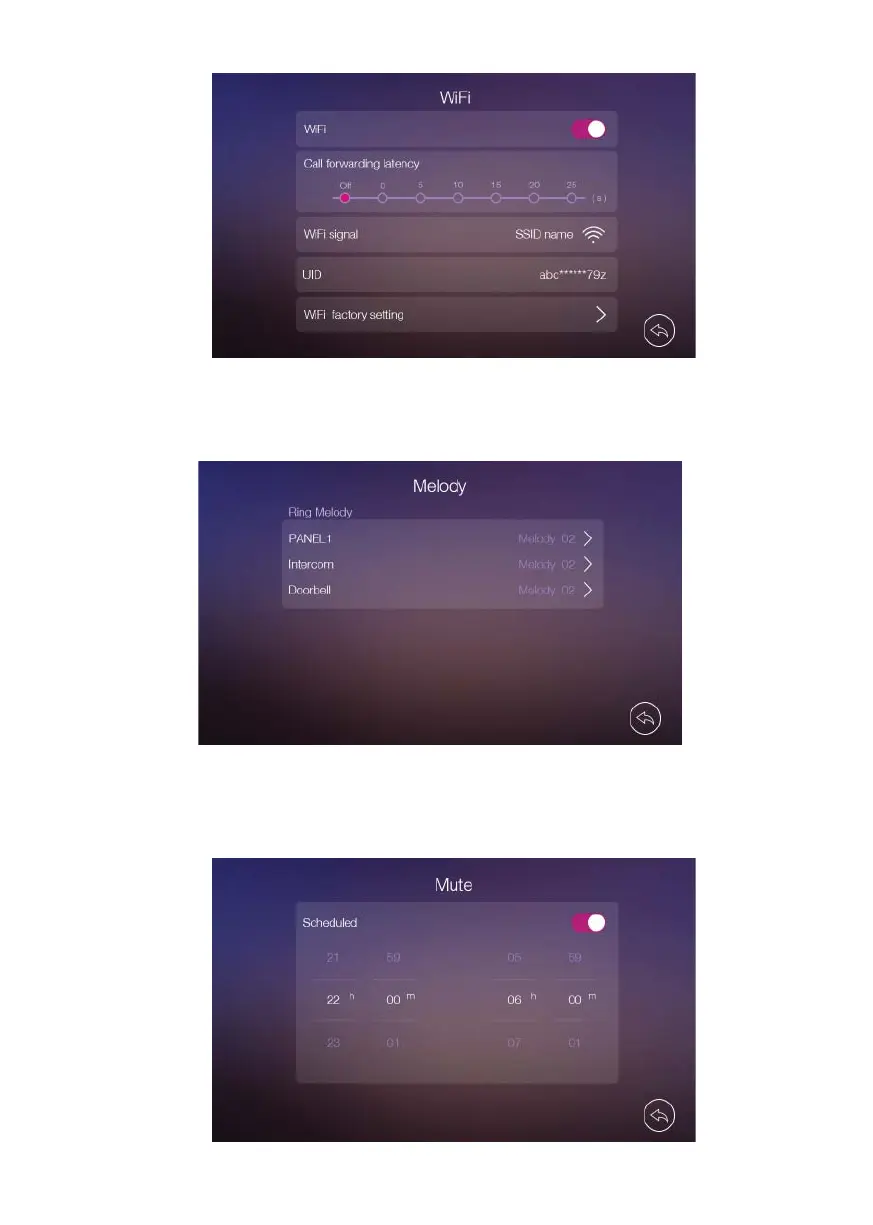 In [Melody] setting page you can set the ring melody for Panel, Intercom and