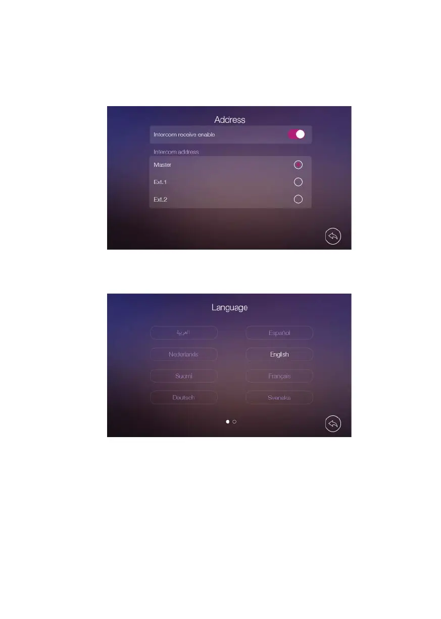 intercom address of the monitor: master, ext1 or ext2. The address of diff erent monitors