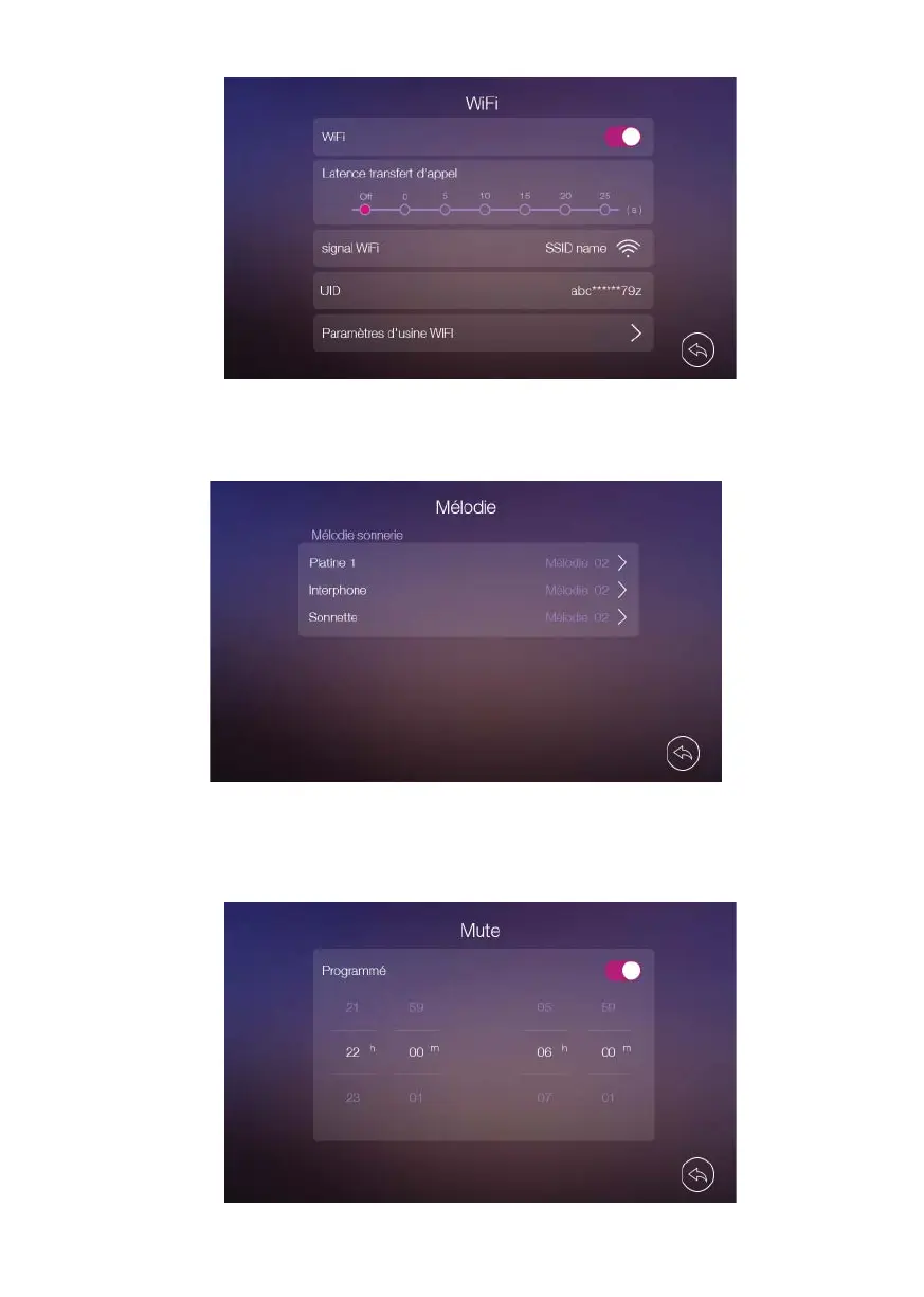 Dans la page de réglage [Mélodie], vous pouvez établir la sonnerie pour Panneau,