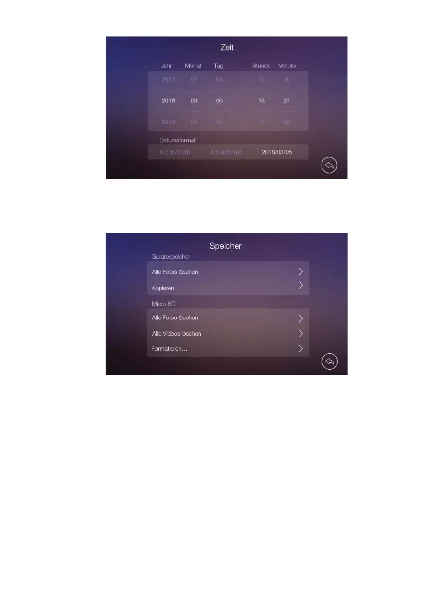 • In den [Speicher] Einstellungen können alle Bilder oder Videos auf der Micro SD-Karte