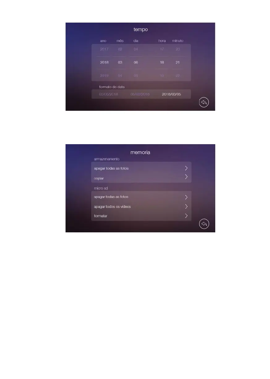 • Na página de defi nição [Memoria], pode apagar todas as imagens ou vídeos do cartão