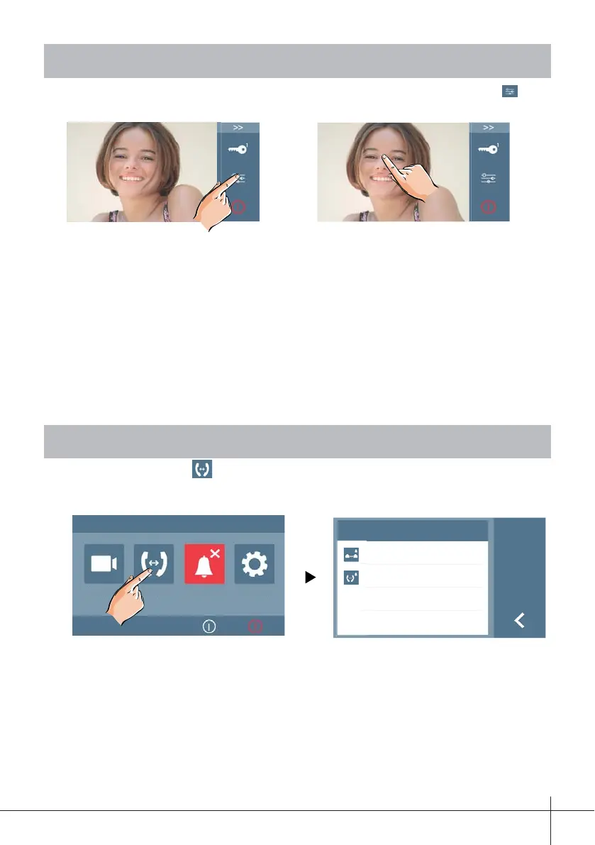 Während des Anrufs oder im Sprechbetrieb mit der Türstation das Symbol drü-