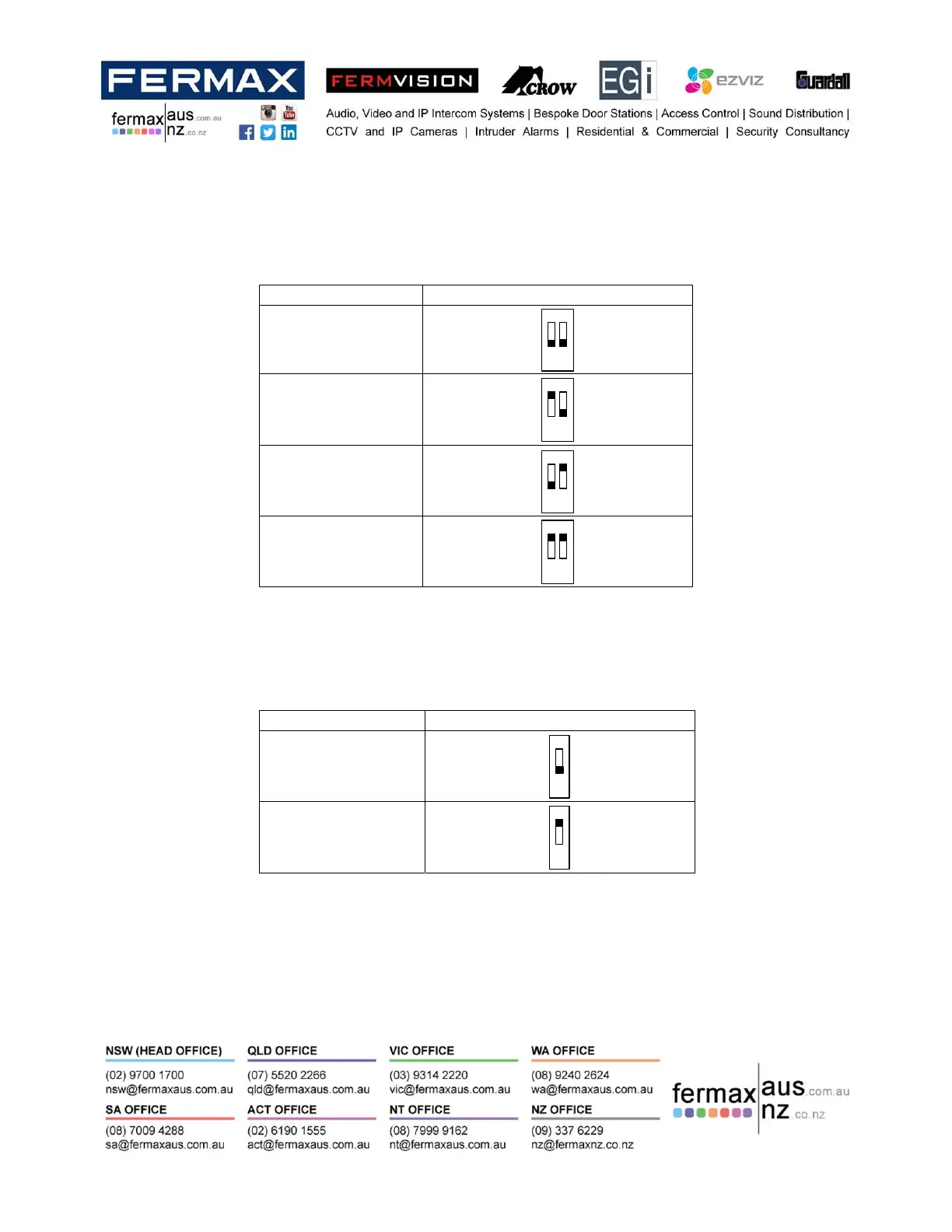 Fermvision FVQ-6030APP - Addressing the Monitors (When Using more than One Monitor); Impedance Switch