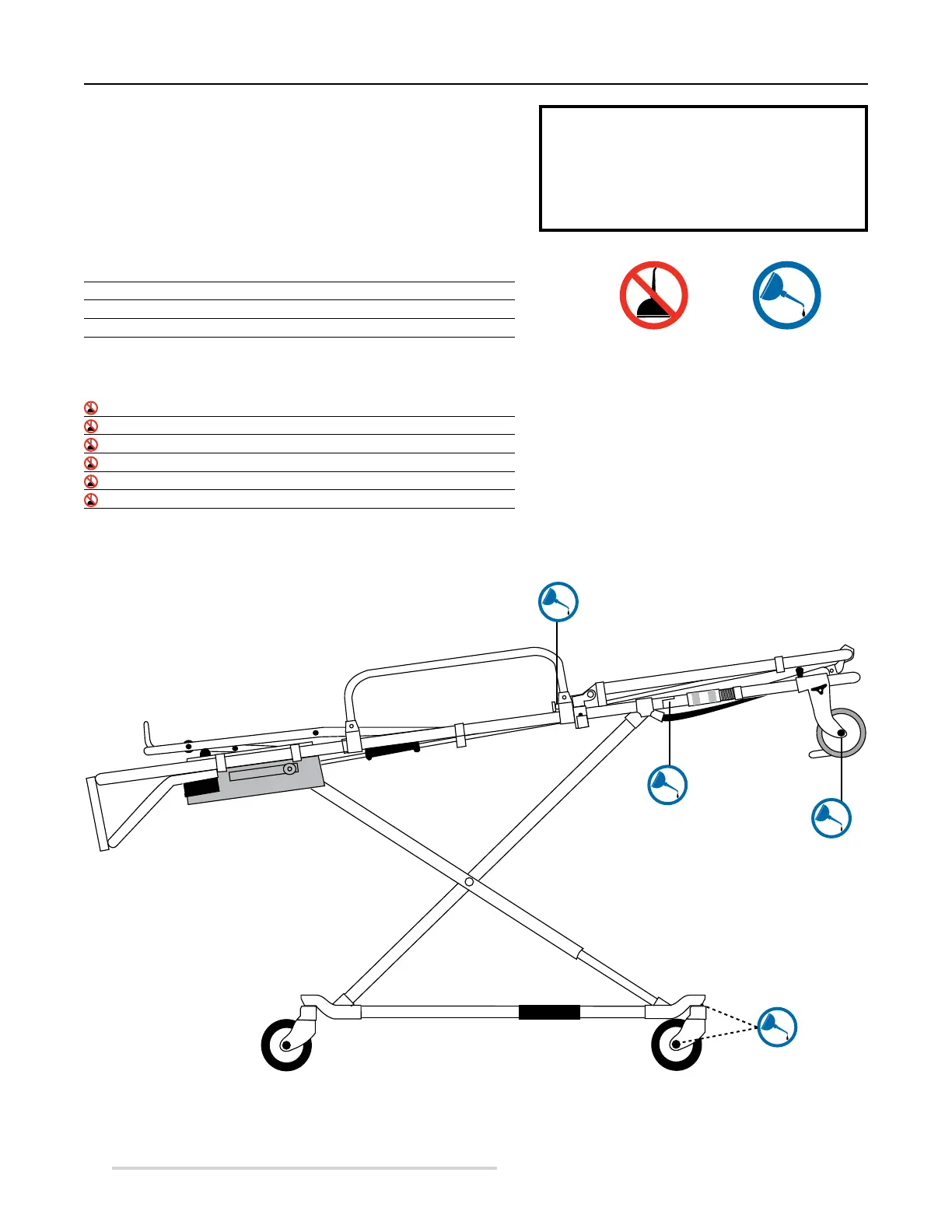 designated below to lubricate the cot. Do not lubricate points marked with