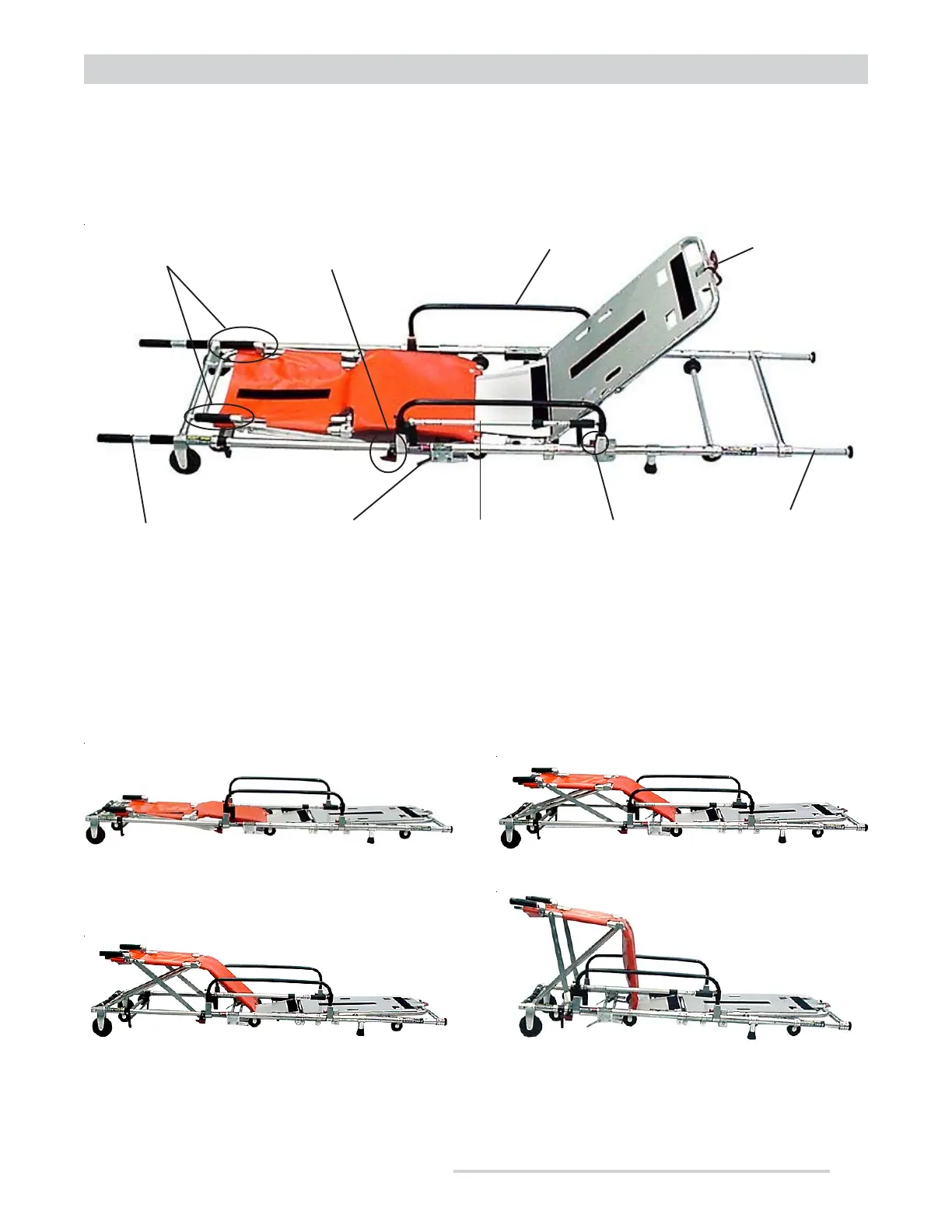 Ferno 50-E - 5 Model 155-E Stretcher Top; Components; Stretcher Top Positions