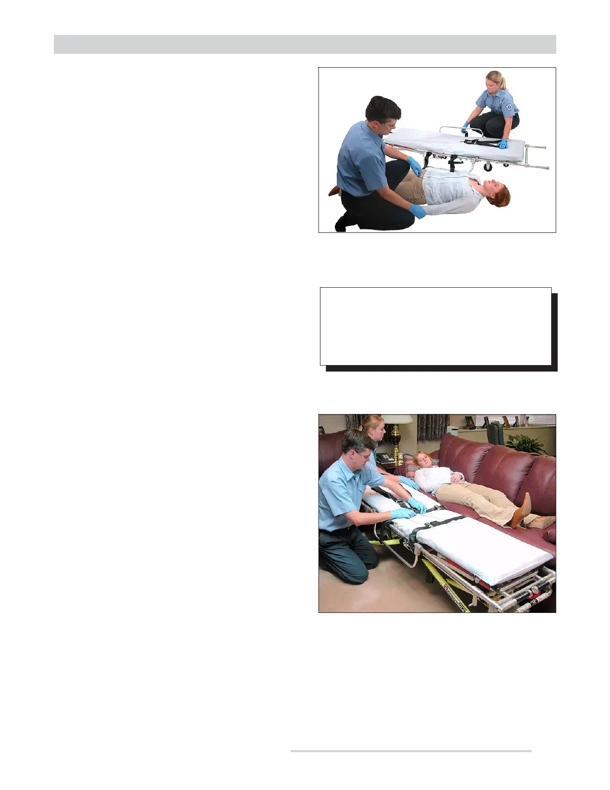 39) or roll the stretcher to the patient and adjust