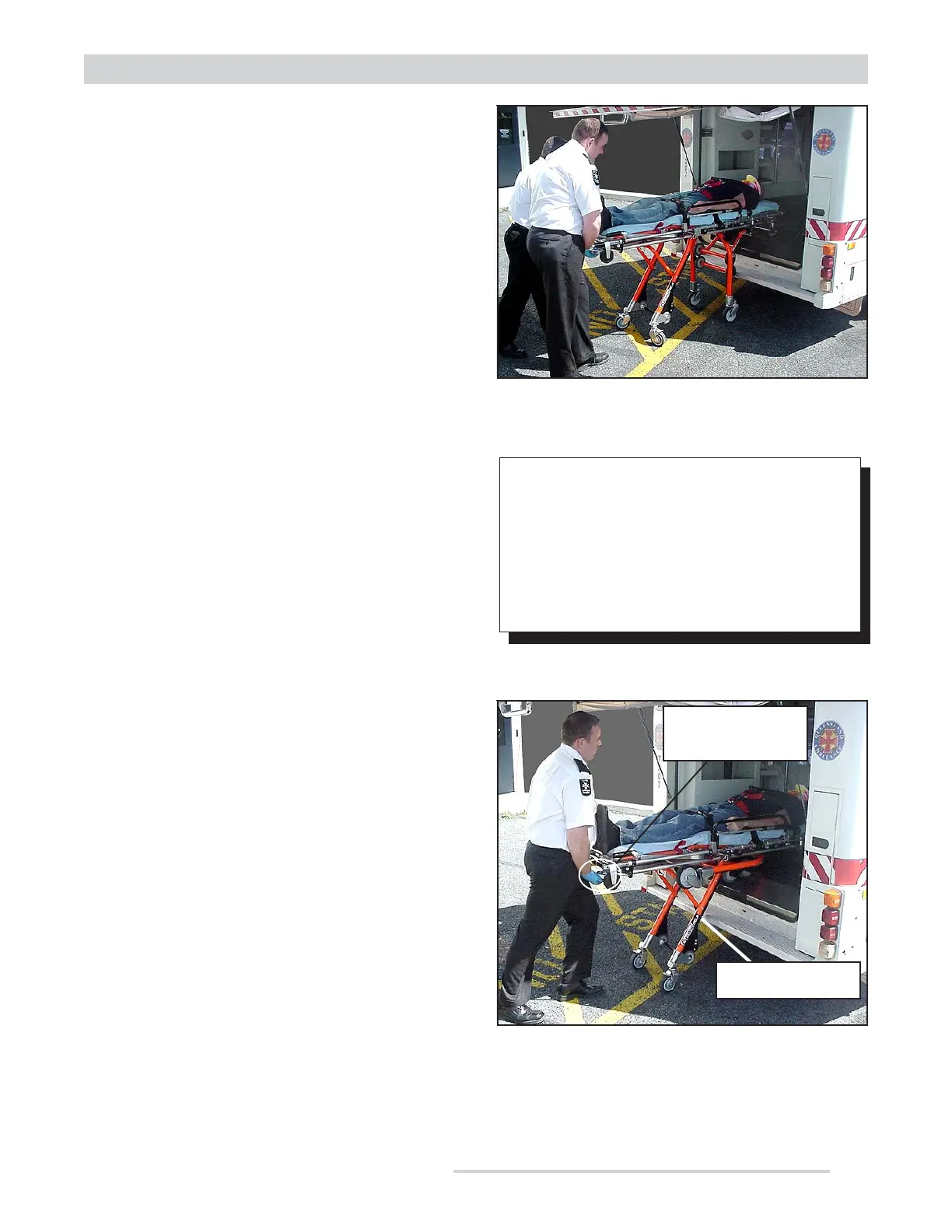 stretcher into the ambulance. Be prepared to