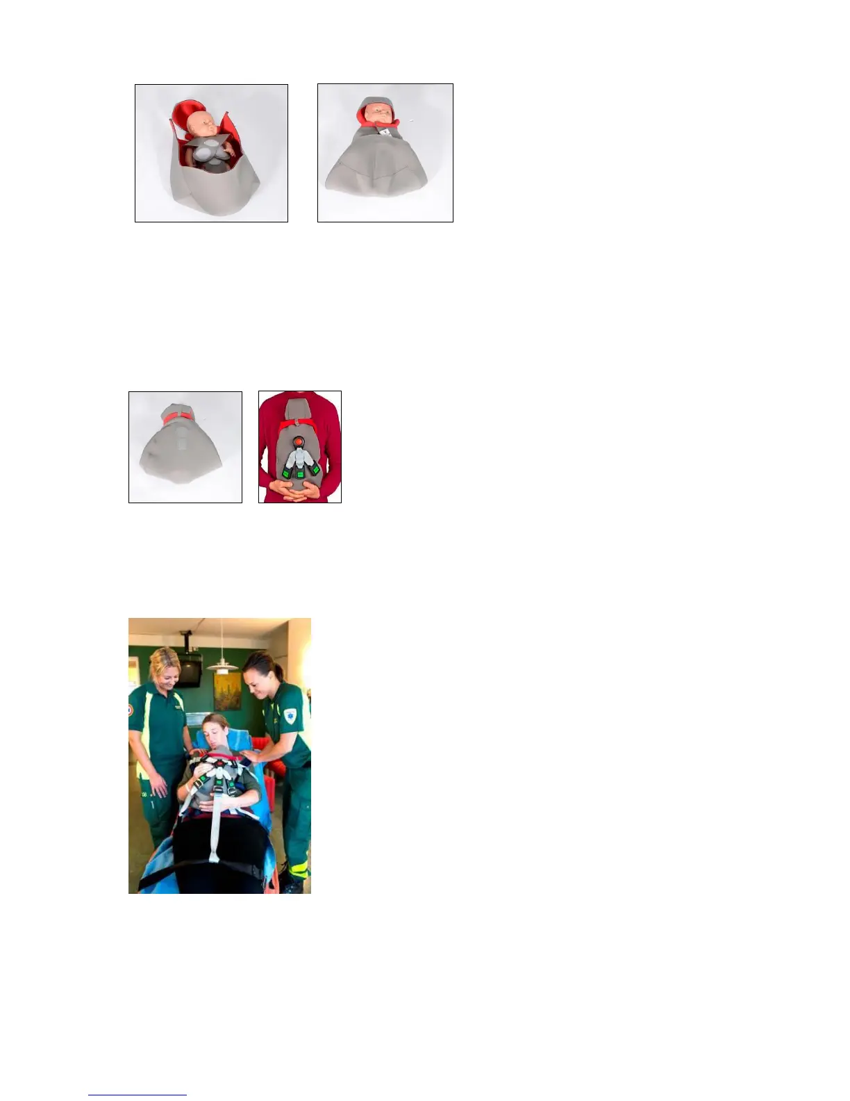 aan de taillebanden van de brancard, dan de beenbanden en tot slot de schouderbanden. Trek bij het vastmaken elke