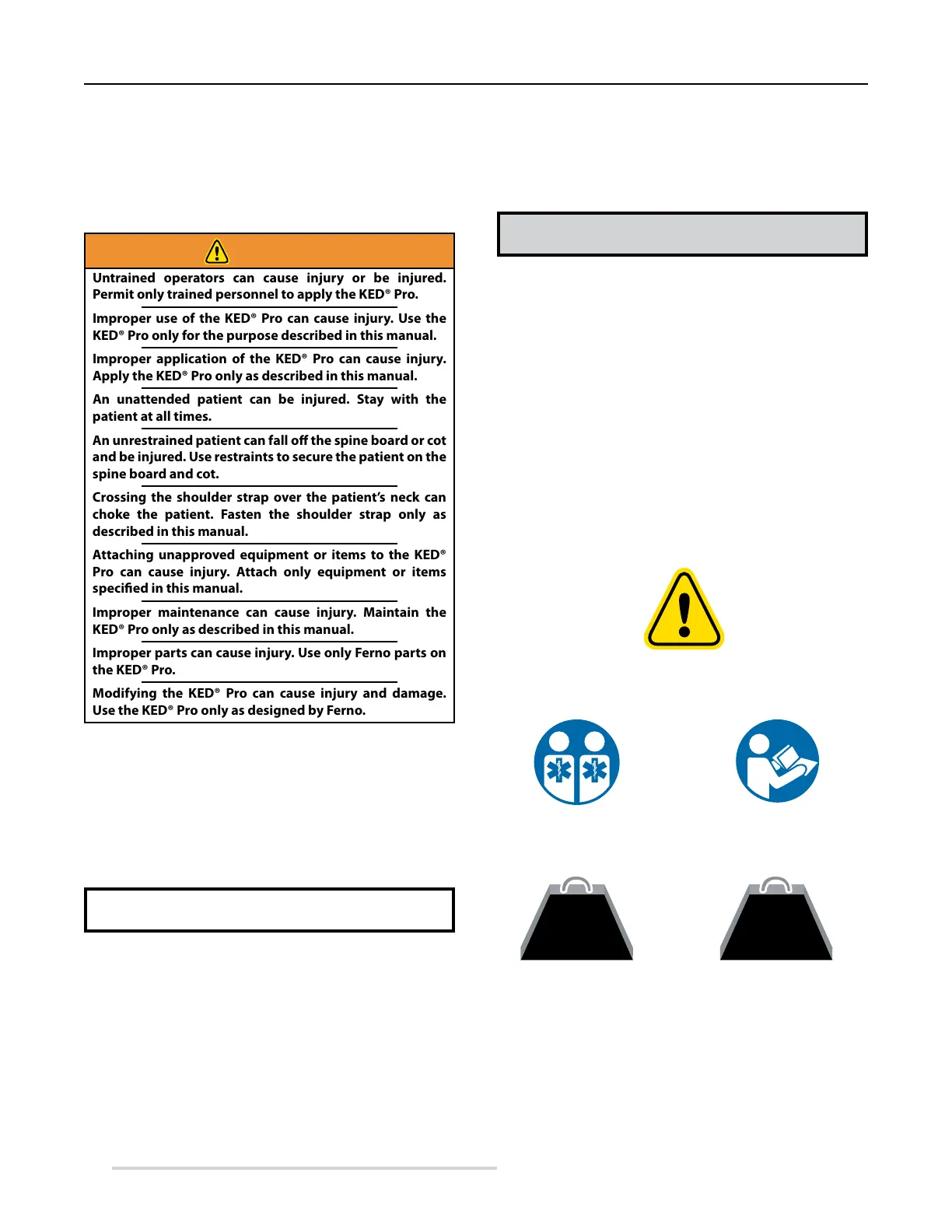 Use the KED® Pro only as designed by Ferno.