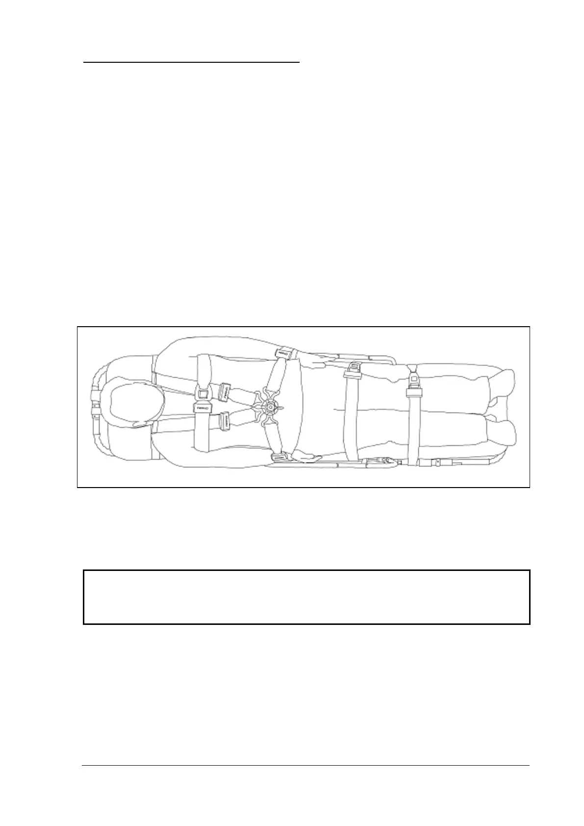 1. The patient should be secured using the harness and both single strap restraints.