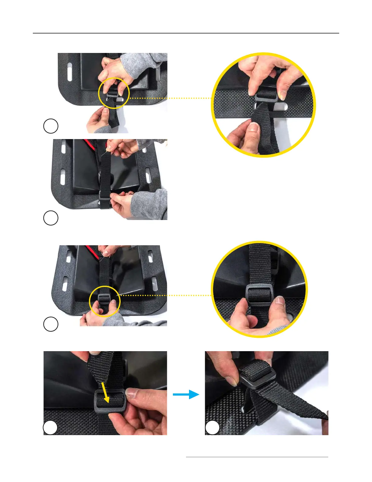 4. Finally, reinsert the strap into the rst loop to ensure a tight t and prevent the strap from coming loose.