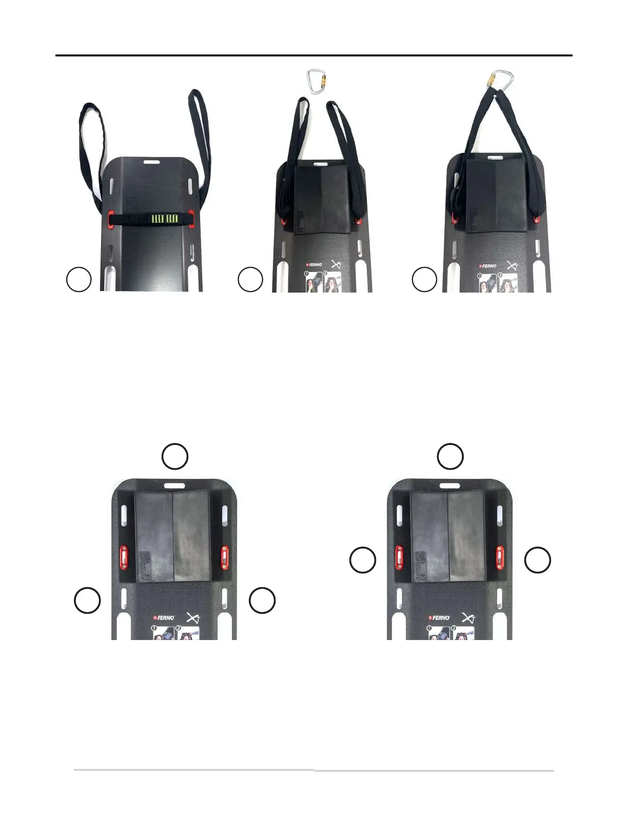 1. Insert the upper strap of the triangular head immobiliser into the hole no. 1 of the board, going from the front to the back of