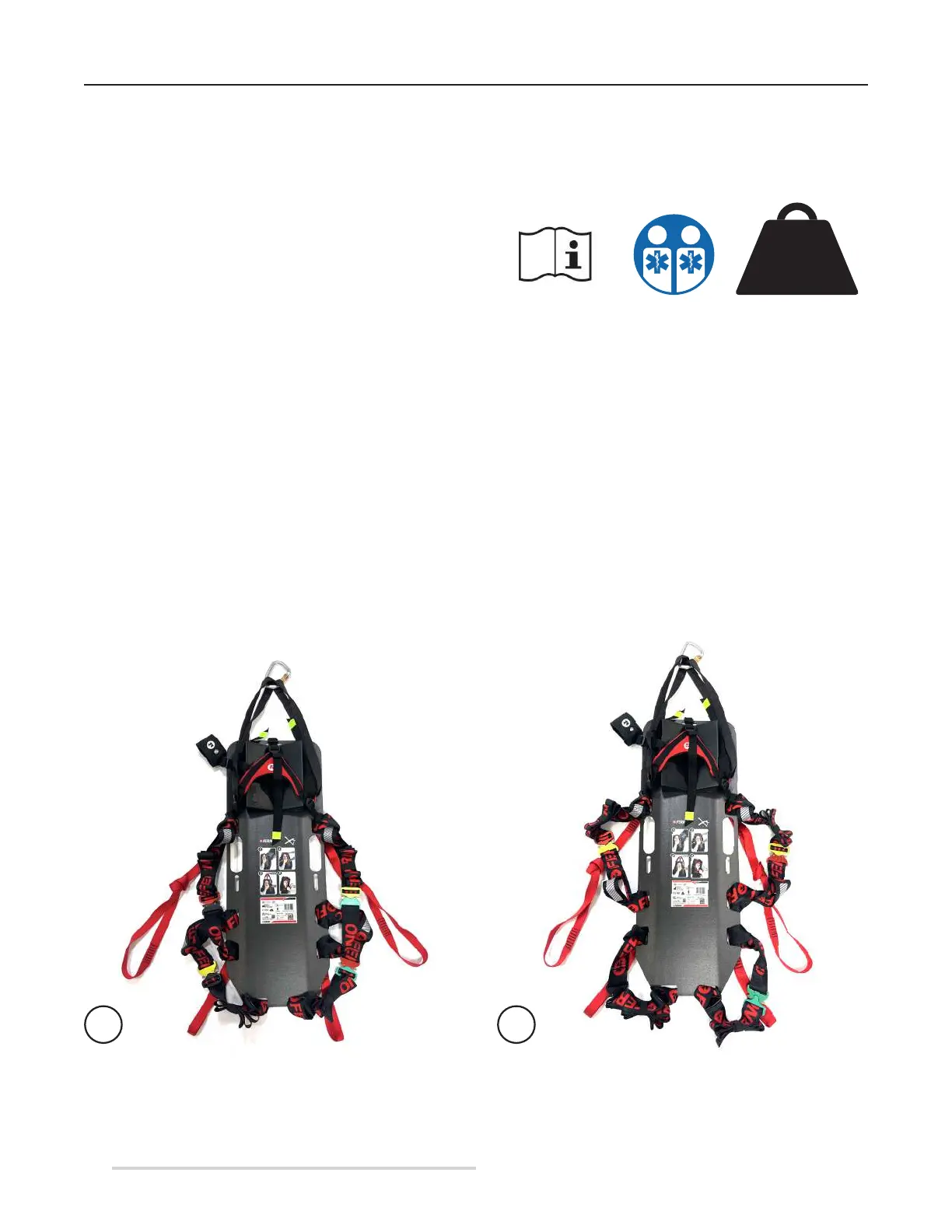 ● Ensure that the triangular head immobiliser restraints are sufciently loose and that the chin strap is properly stowed in