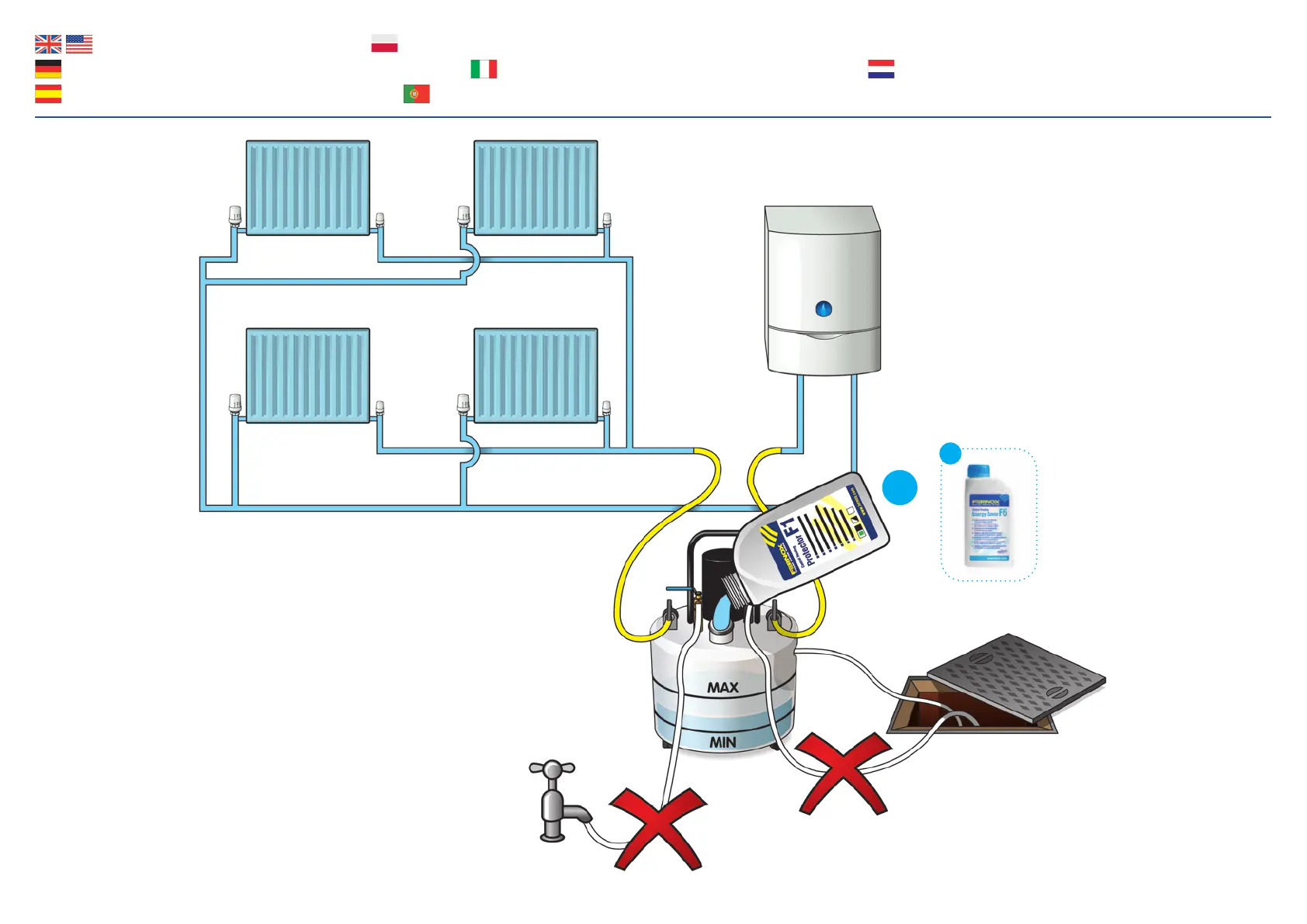 Fernox Protector F1 hinzufügen und umlaufen lassen Aggiungere Fernox Protector F1 e farlo circolare Voeg Fernox Protector F1 toe en laat circuleren