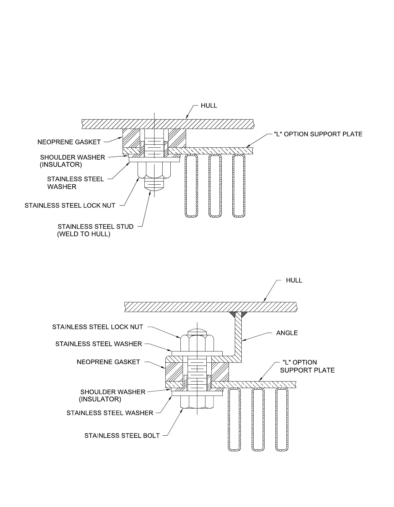 shoulder washer provide isolation of the cooler from the hull.