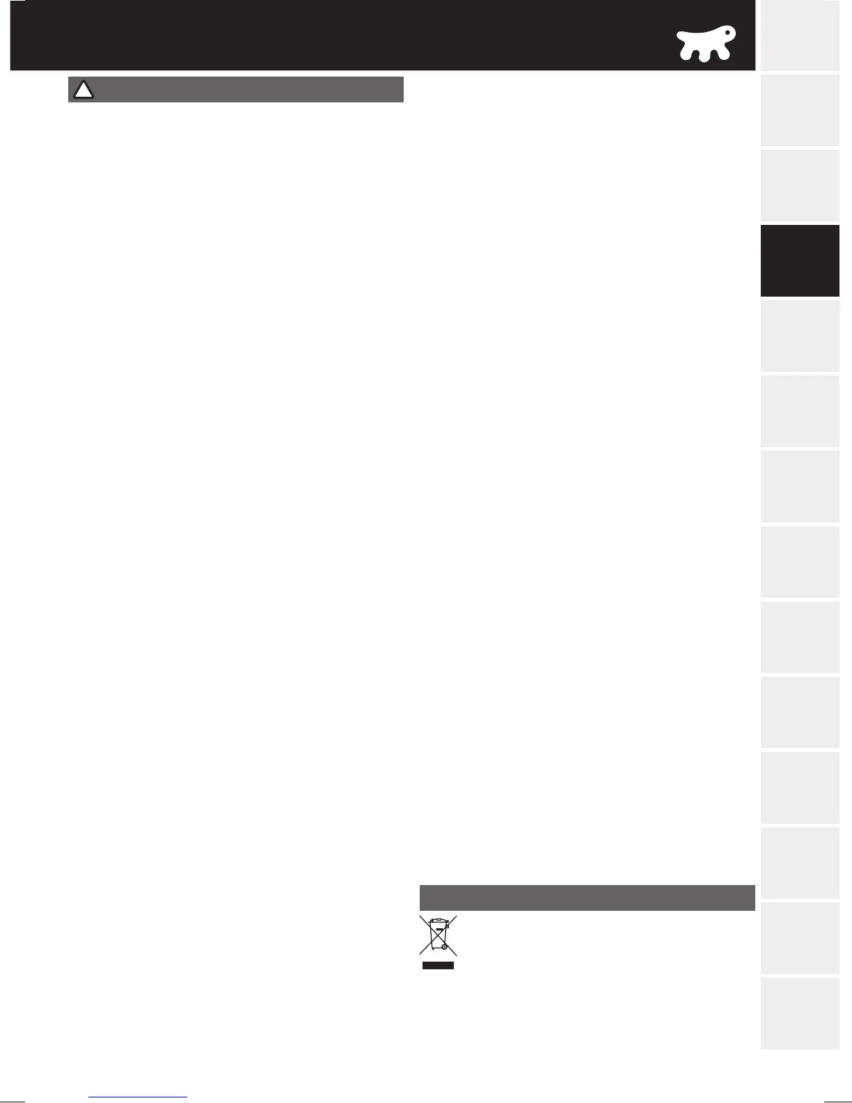• Aufgrund elektrischer Bauteile darf niemals Flüssigkeit