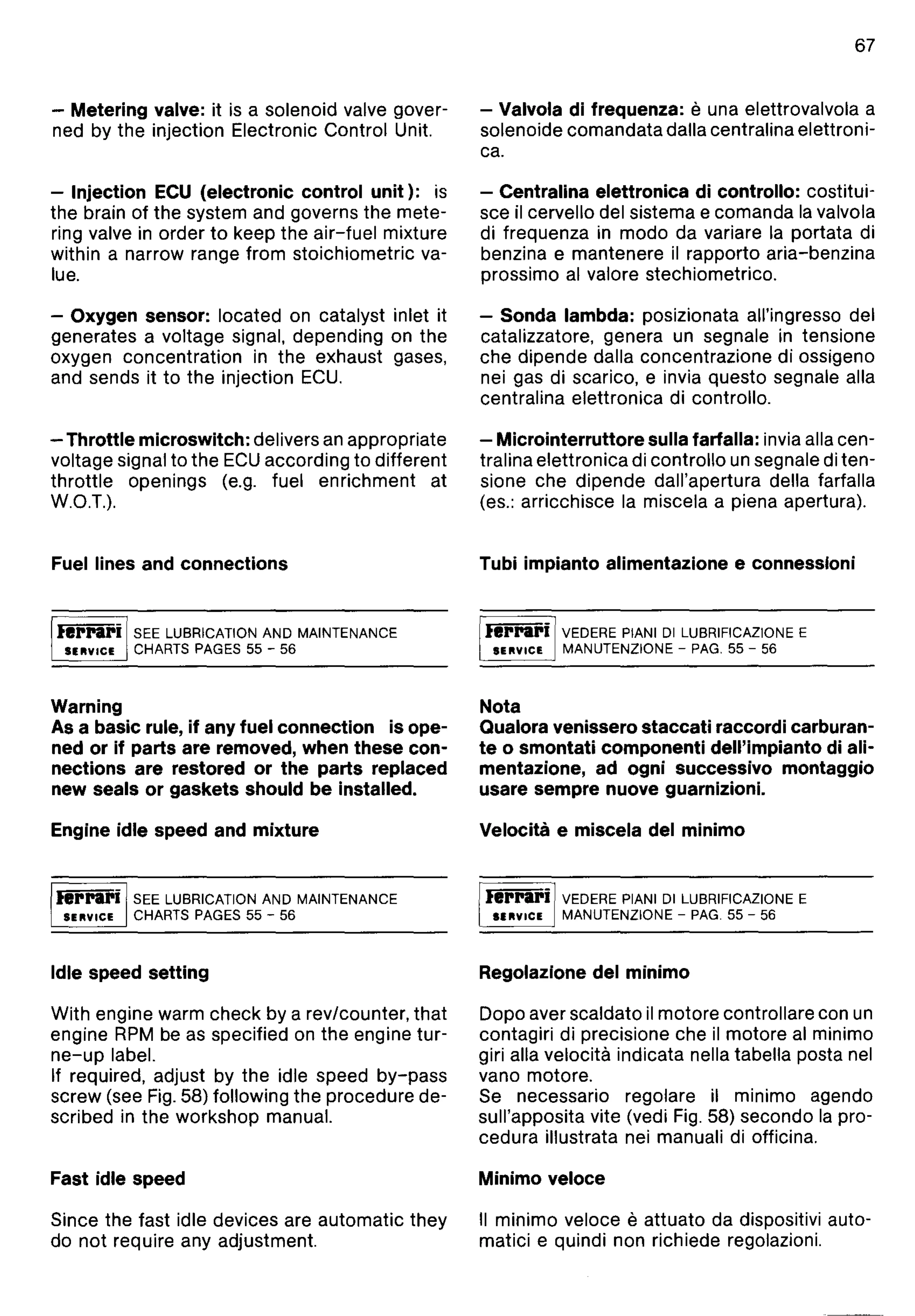 lerrari SEE LUBRICATION ANO MAINTENANCE