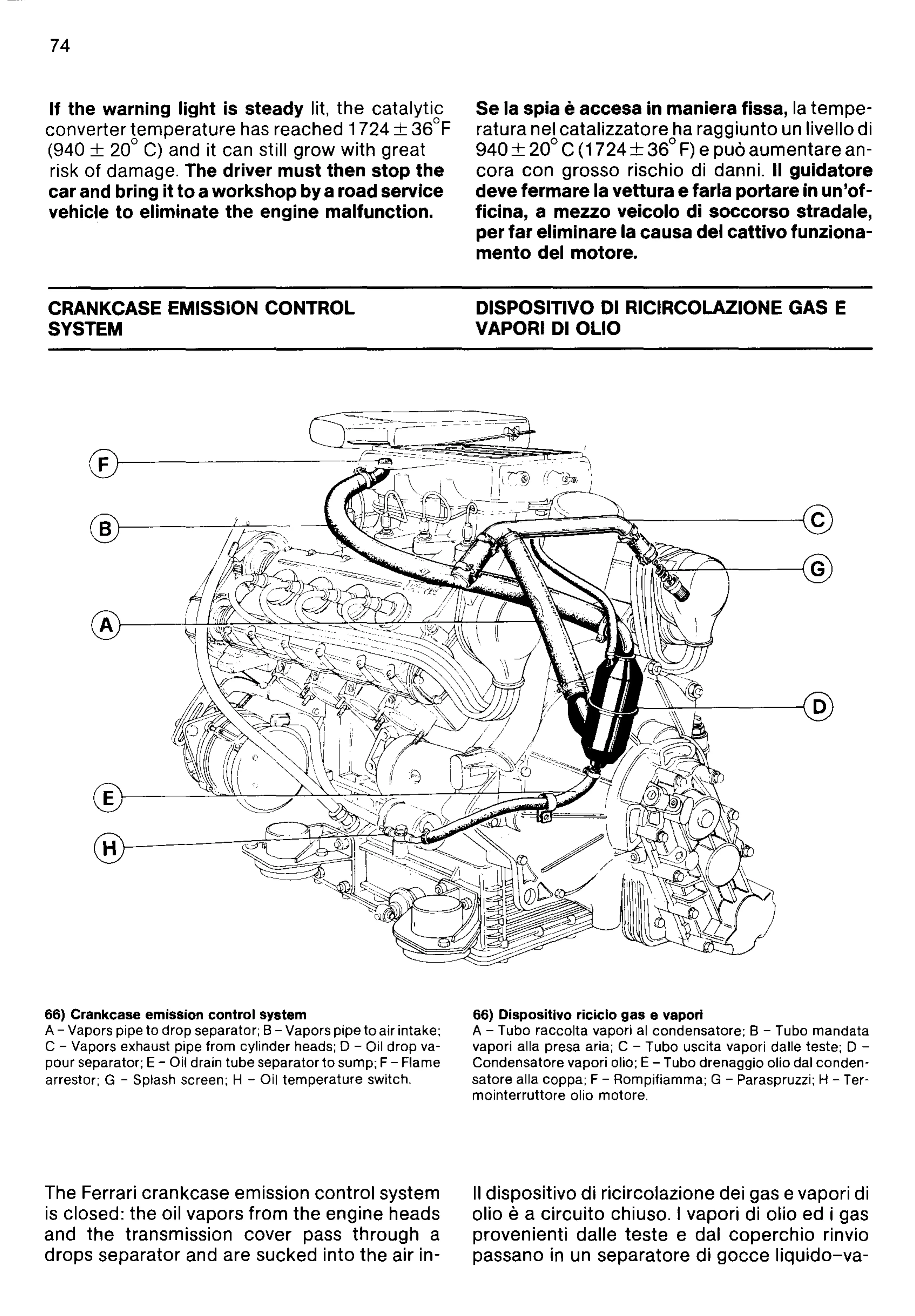 C - Vapors exhaust pipe from cylinder heads; D - Oil drop va-